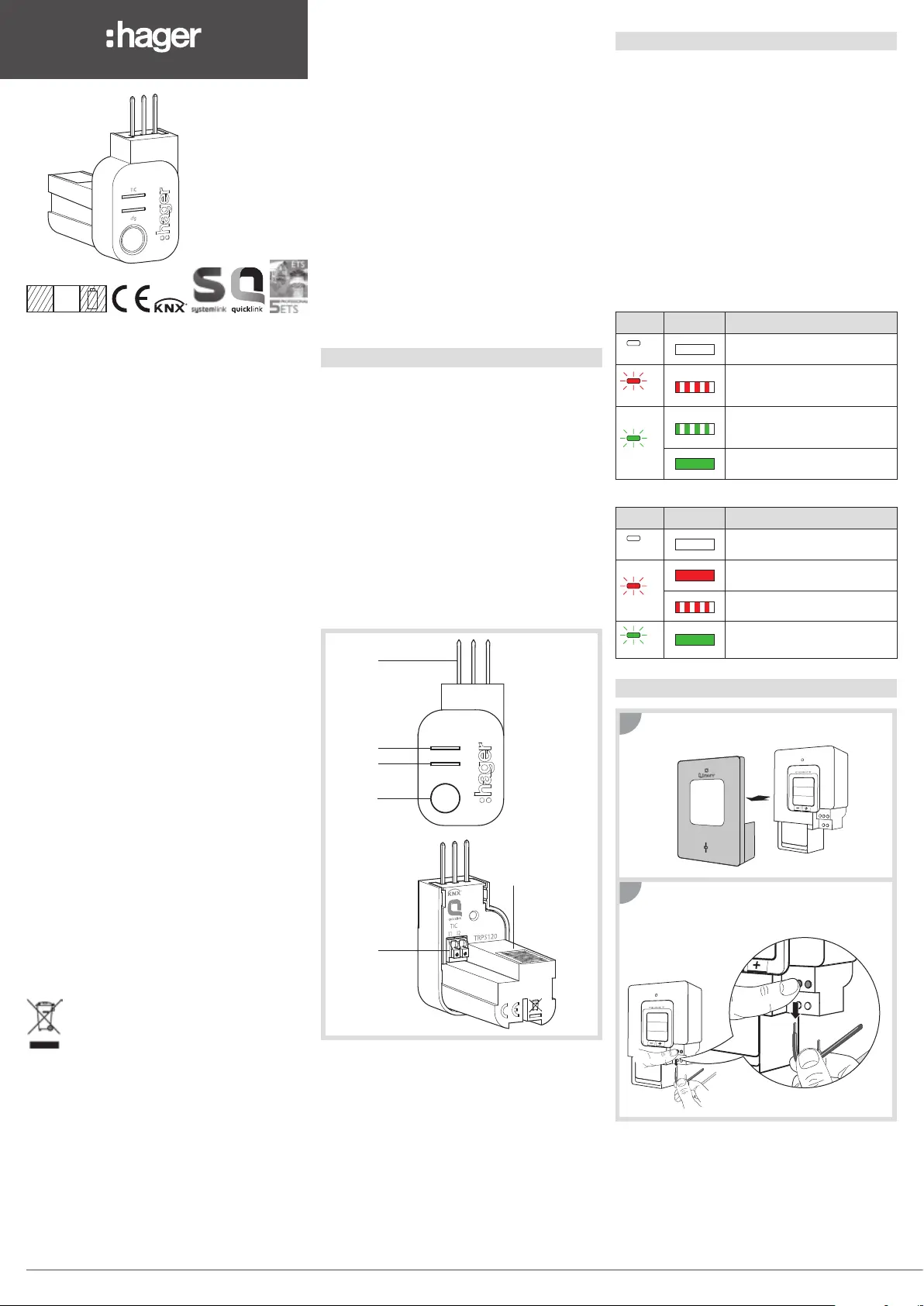 Lies die bedienungsanleitung für Hager TRPS120 (4 Seiten) kostenlos online; sie gehört zur Kategorie Intelligentes Zuhause. Dieses Handbuch wurde von 20 Personen als hilfreich bewertet und erhielt im Schnitt 4.4 Sterne aus 10.5 Bewertungen. Hast du eine Frage zu Hager TRPS120 oder möchtest du andere Nutzer dieses Produkts befragen? Stelle eine Frage
