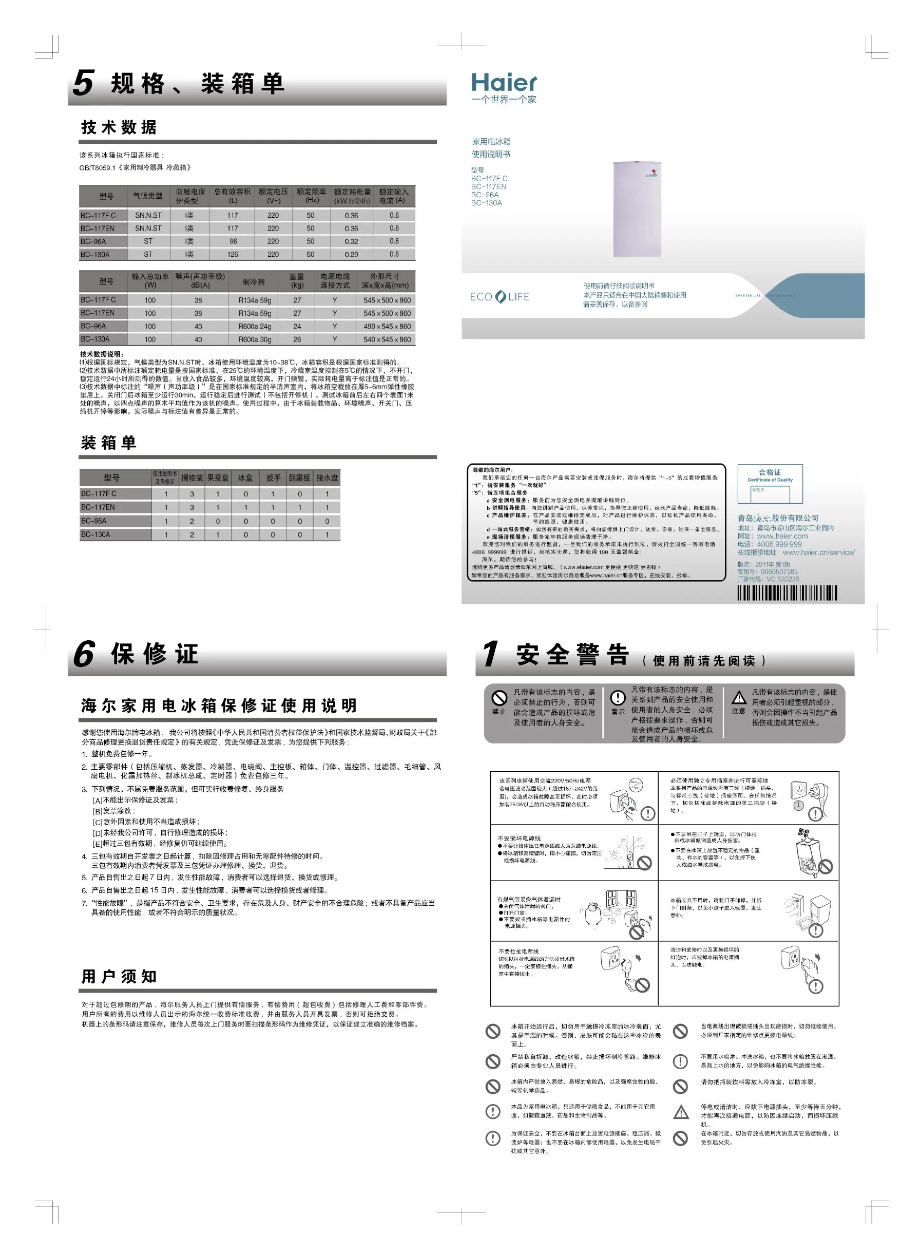 Haier BC-130A Bedienungsanleitung