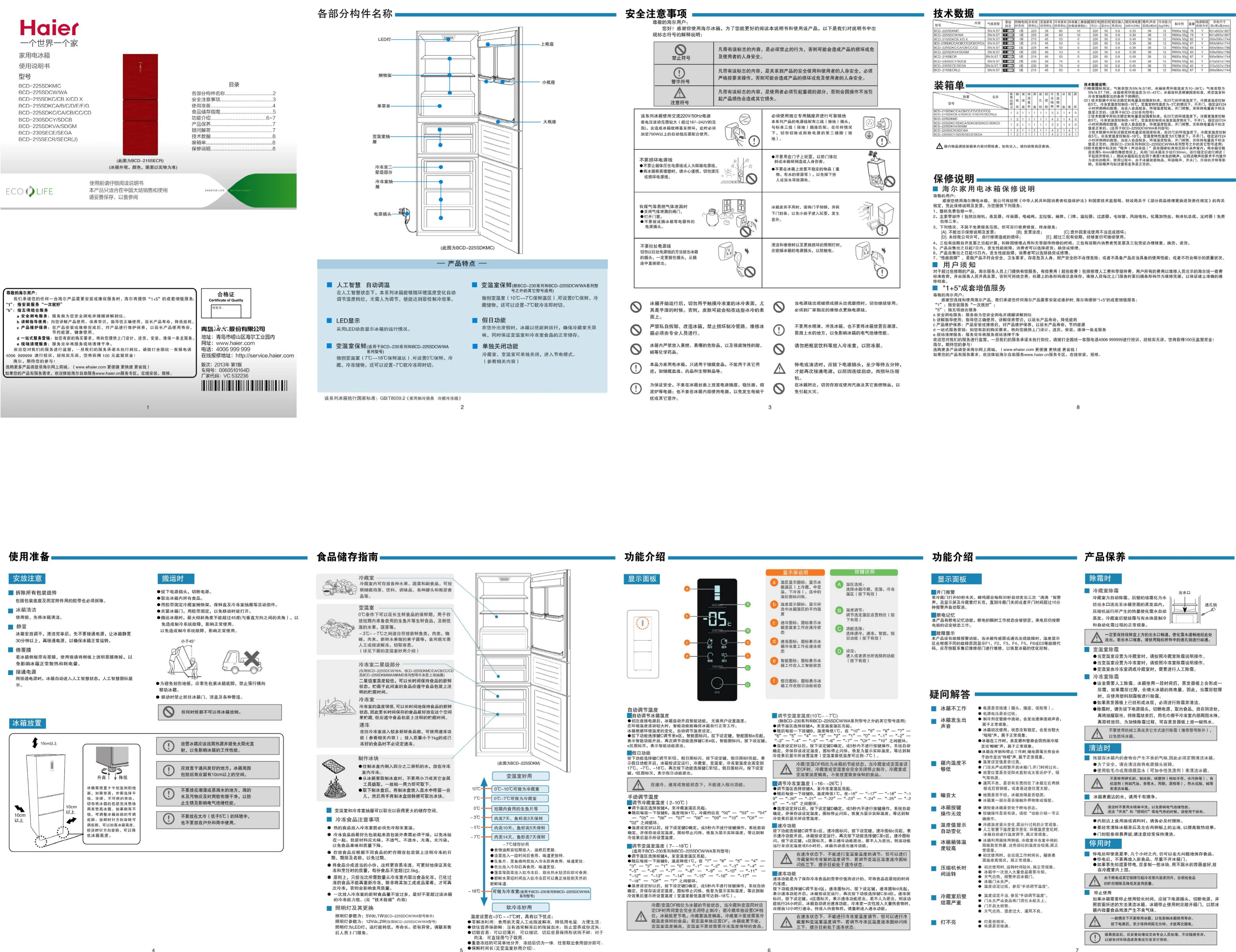 Haier BCD-215SECR(J) Bedienungsanleitung