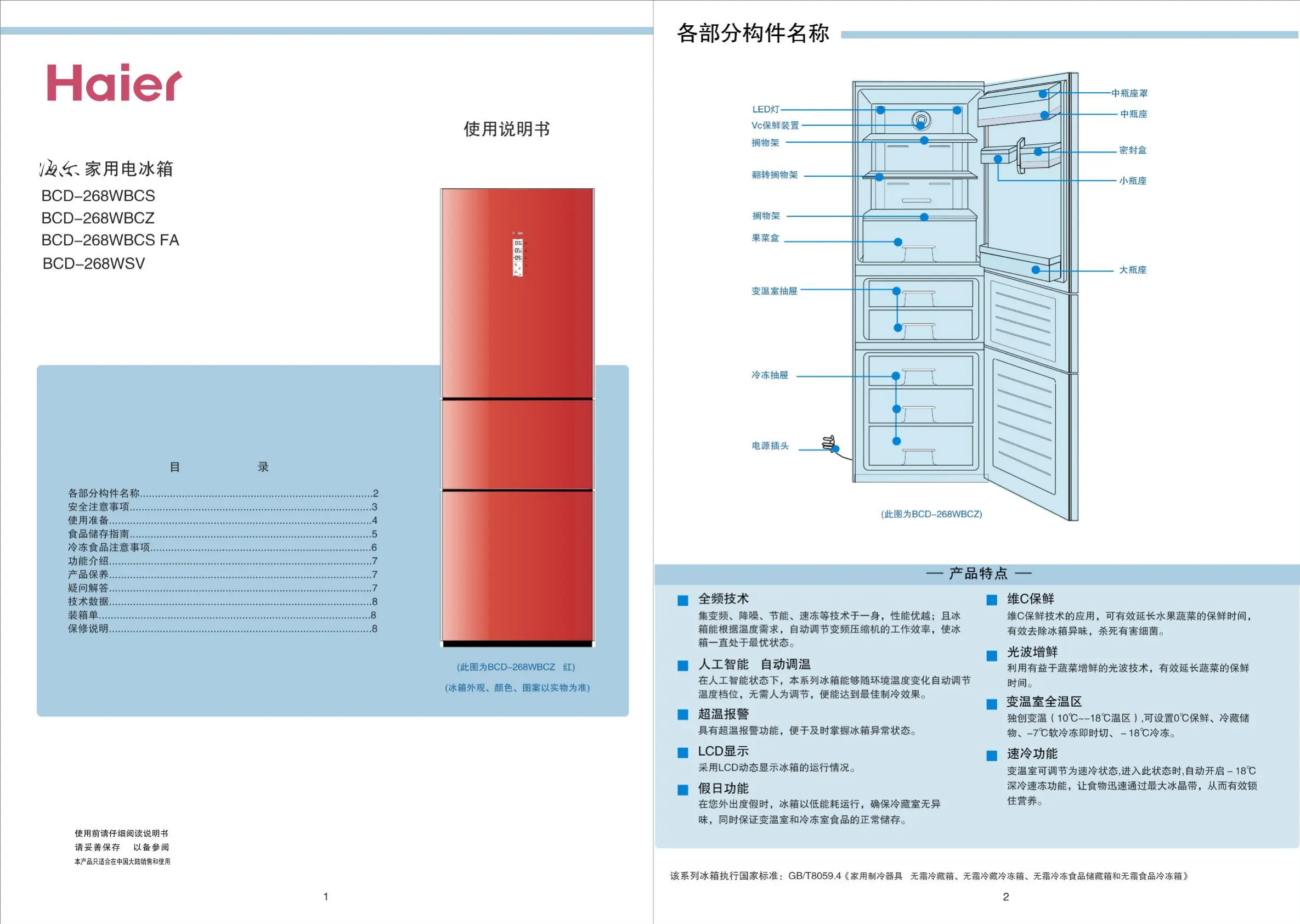 Haier BCD-268WBCS Bedienungsanleitung