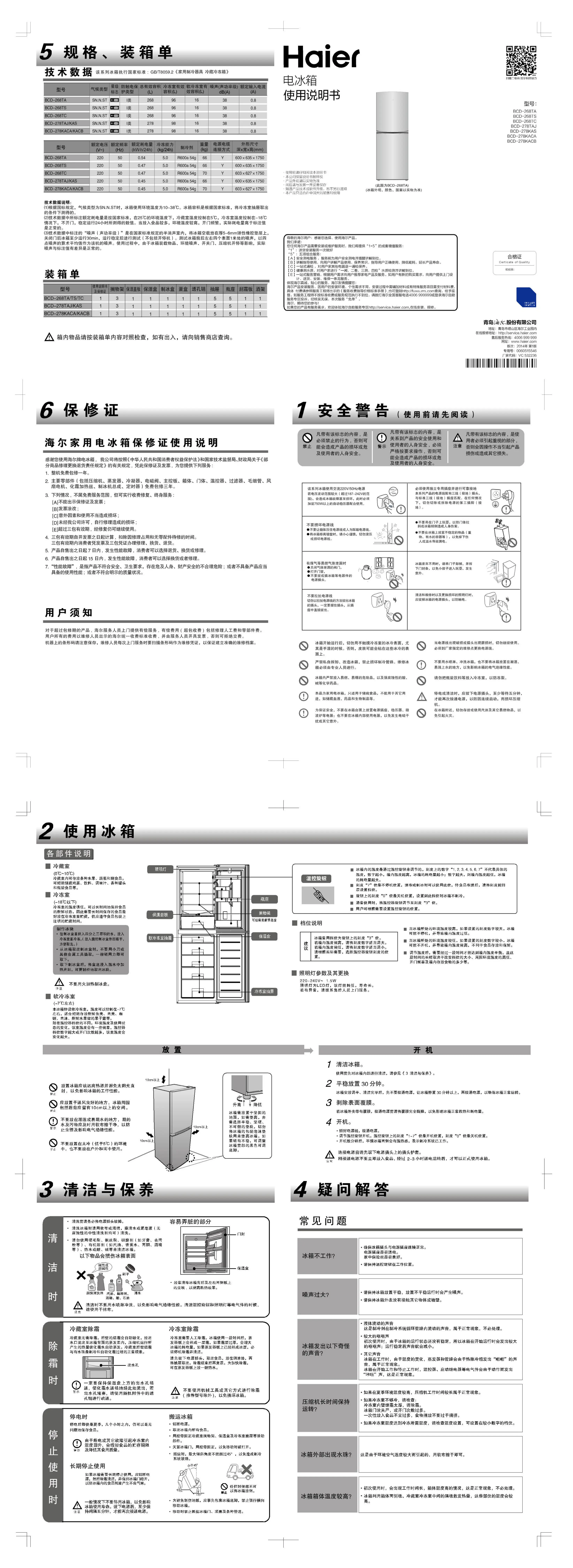 Haier BCD-278KACB Bedienungsanleitung