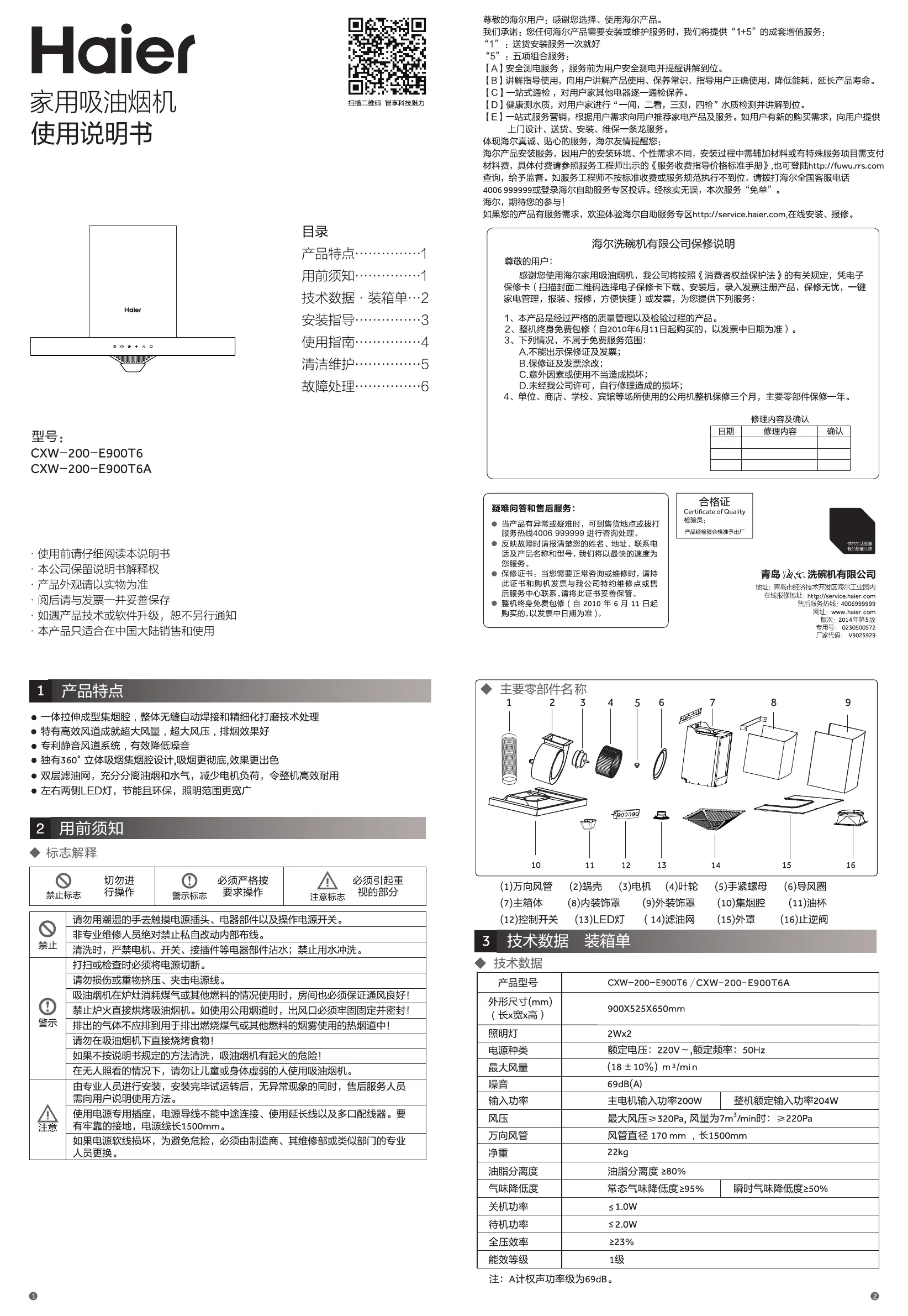 Haier CXW-200-E900T6A Bedienungsanleitung