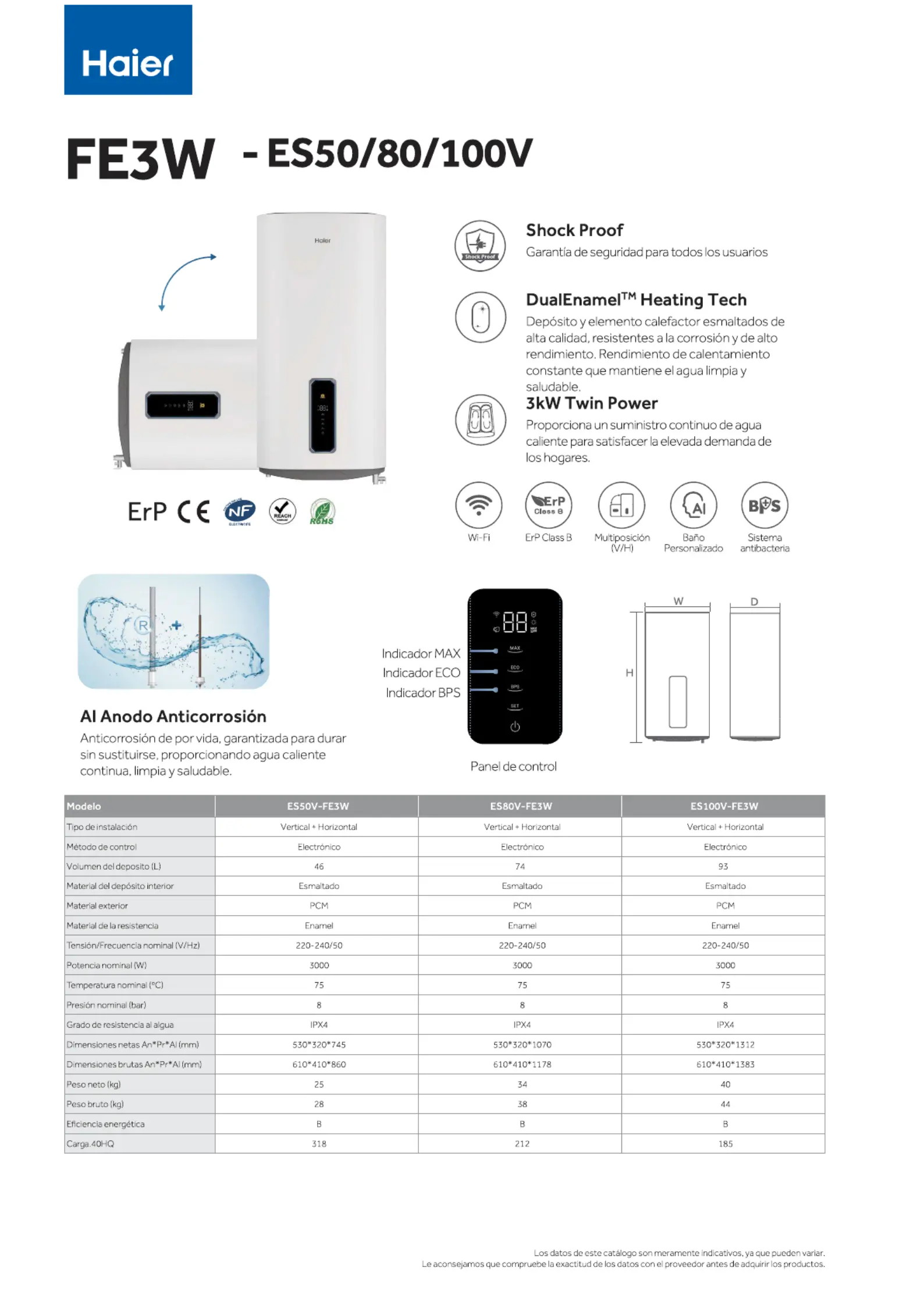 Lies die bedienungsanleitung für Haier ES100V-FE3 (1 Seiten) kostenlos online; sie gehört zur Kategorie Durchlauferhitzer und Boiler. Dieses Handbuch wurde von 2 Personen als hilfreich bewertet und erhielt im Schnitt 4.0 Sterne aus 6 Bewertungen. Hast du eine Frage zu Haier ES100V-FE3 oder möchtest du andere Nutzer dieses Produkts befragen? Stelle eine Frage