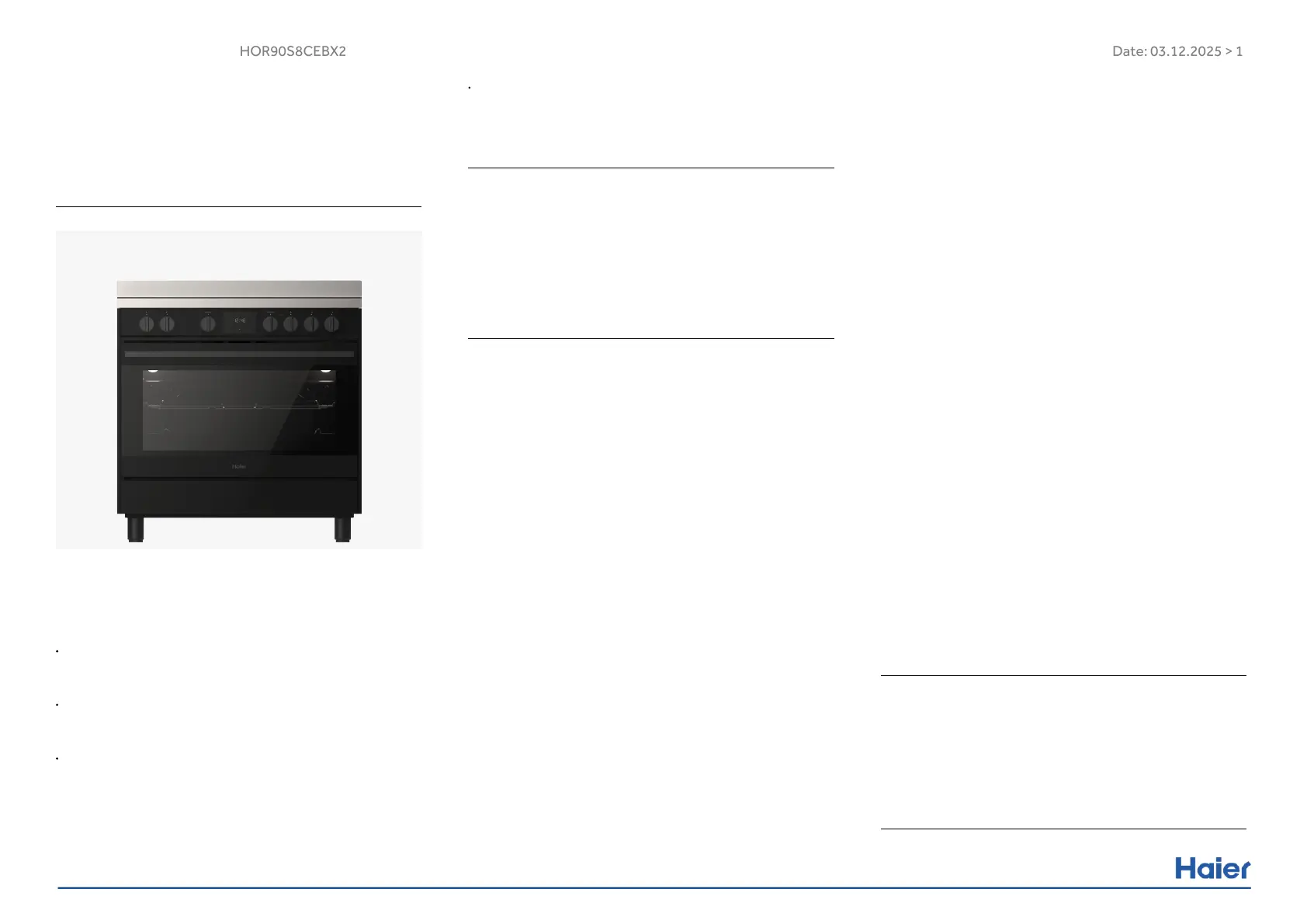 Lies die bedienungsanleitung für Haier HOR90S8CEBX2 (32 Seiten) kostenlos online; sie gehört zur Kategorie Herd. Dieses Handbuch wurde von 9 Personen als hilfreich bewertet und erhielt im Schnitt 5.0 Sterne aus 6 Bewertungen. Hast du eine Frage zu Haier HOR90S8CEBX2 oder möchtest du andere Nutzer dieses Produkts befragen? Stelle eine Frage