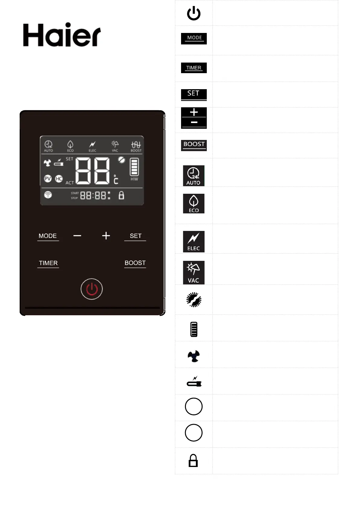 Turns a one-time boost heating function on or