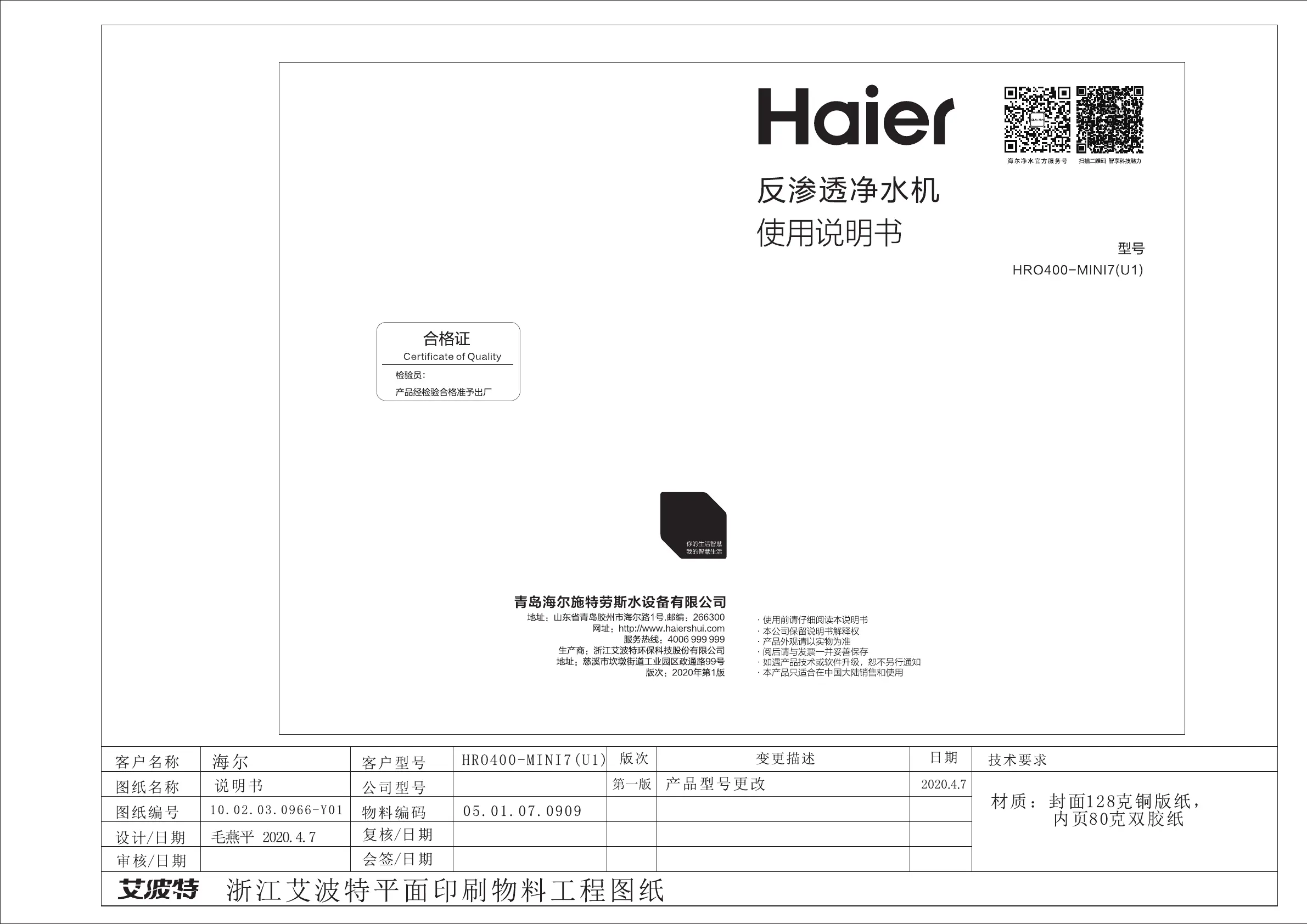 Lies die bedienungsanleitung für Haier HRO400-MINI7(U1) (12 Seiten) kostenlos online; sie gehört zur Kategorie Wasserfilter. Dieses Handbuch wurde von 20 Personen als hilfreich bewertet und erhielt im Schnitt 4.2 Sterne aus 5 Bewertungen. Hast du eine Frage zu Haier HRO400-MINI7(U1) oder möchtest du andere Nutzer dieses Produkts befragen? Stelle eine Frage