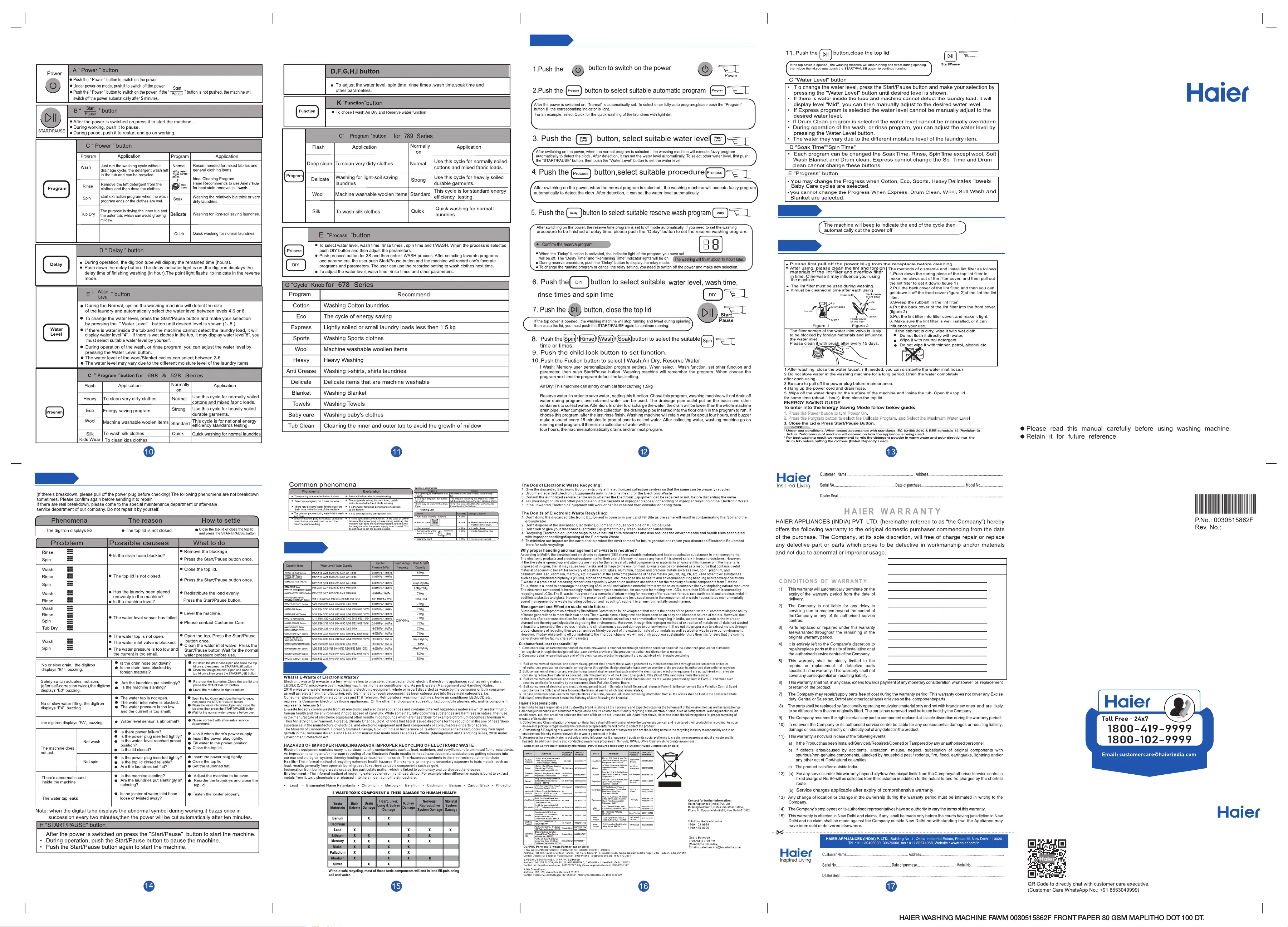 Haier Careline: 1800-419-9999, 1800-102-9999
