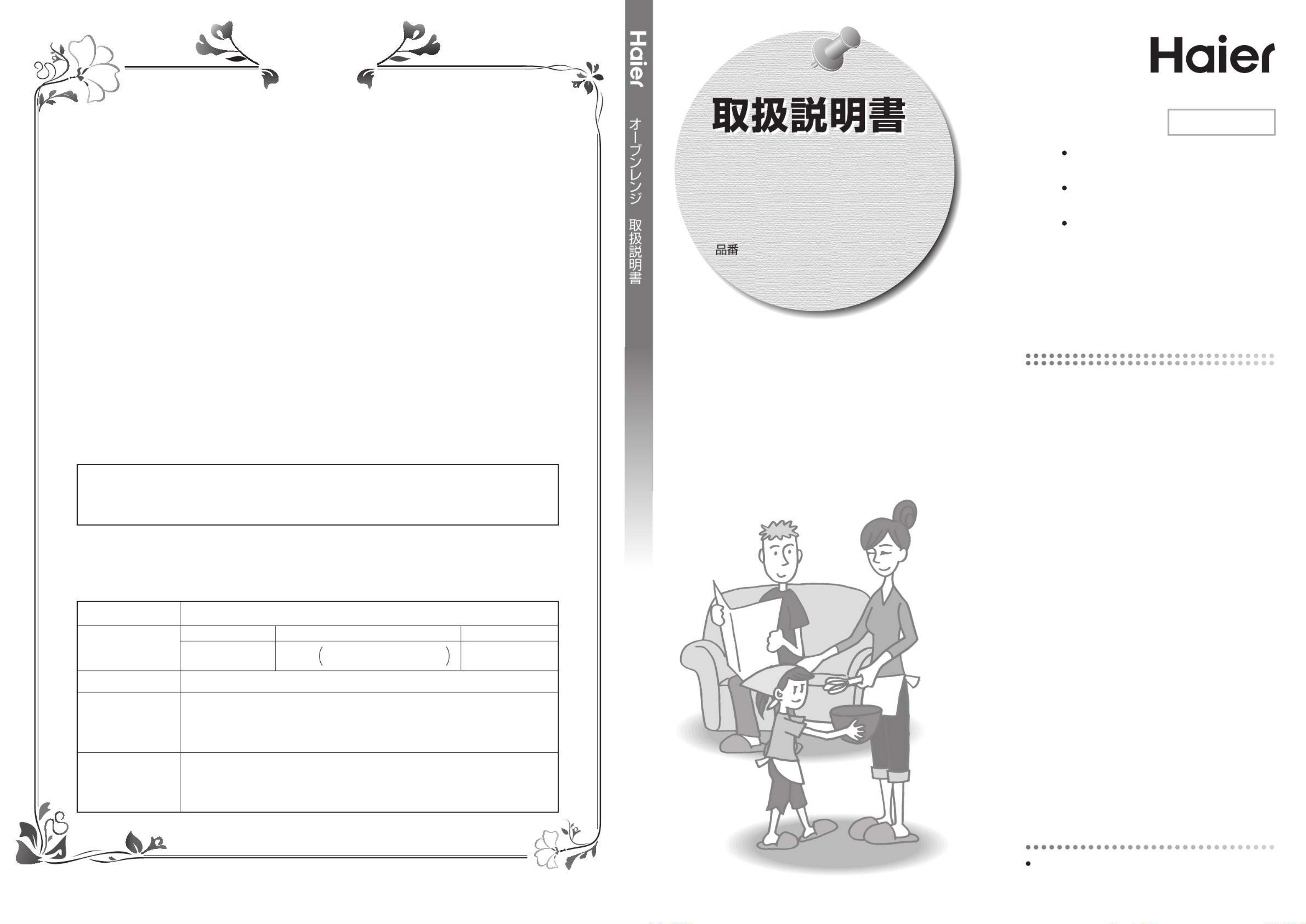 3.ご贈答等で本書に記入の販売店で無料修理をお受けになれない場合には、ハイアールジャパンセールス株式会社