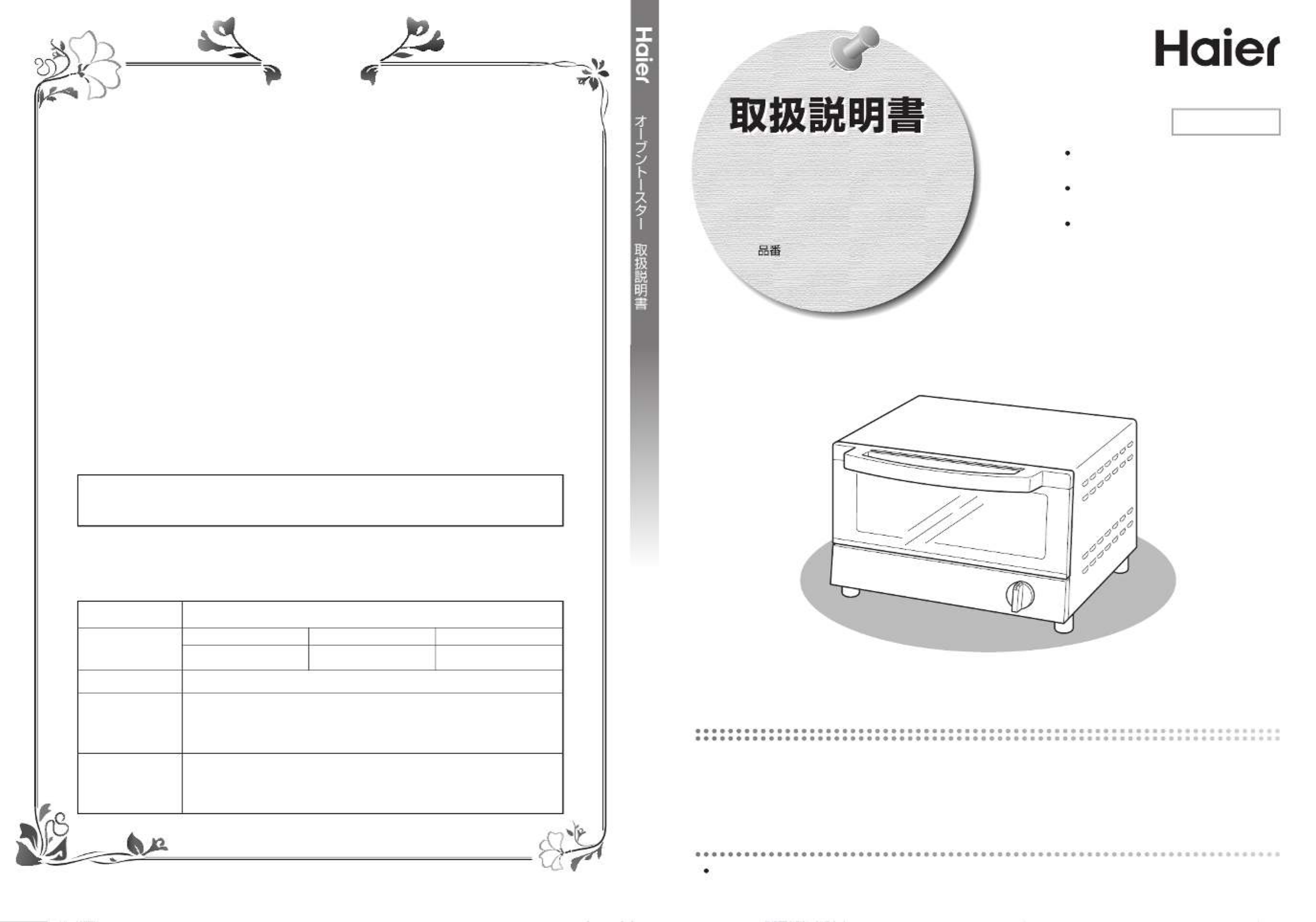 3.ご贈答等で本書に記入の販売店で無料修理をお受けになれない場合には、ハイアールジャパンセールス株式会社