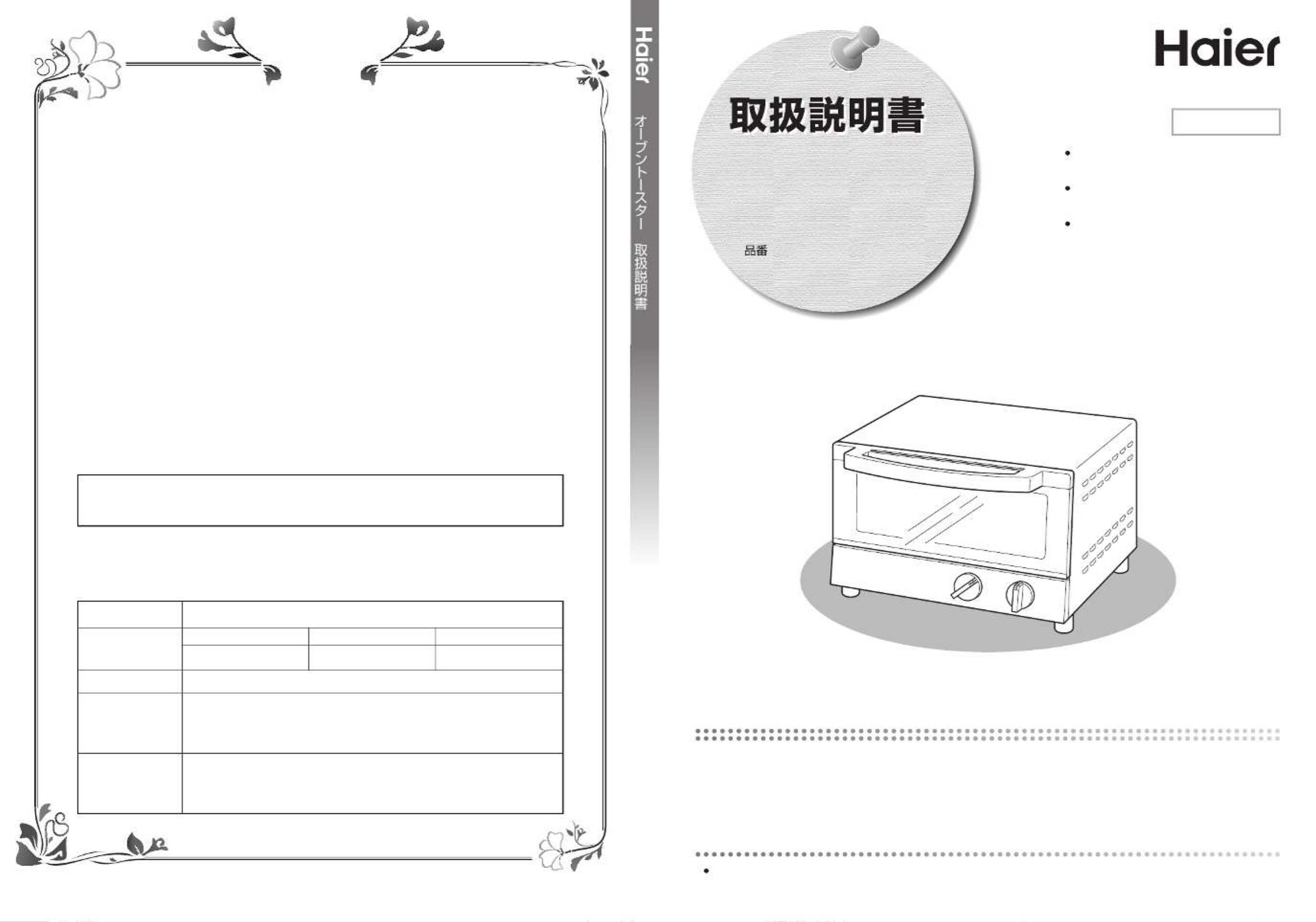 3.ご贈答等で本書に記入の販売店で無料修理をお受けになれない場合には、ハイアールジャパンセールス株式会社
