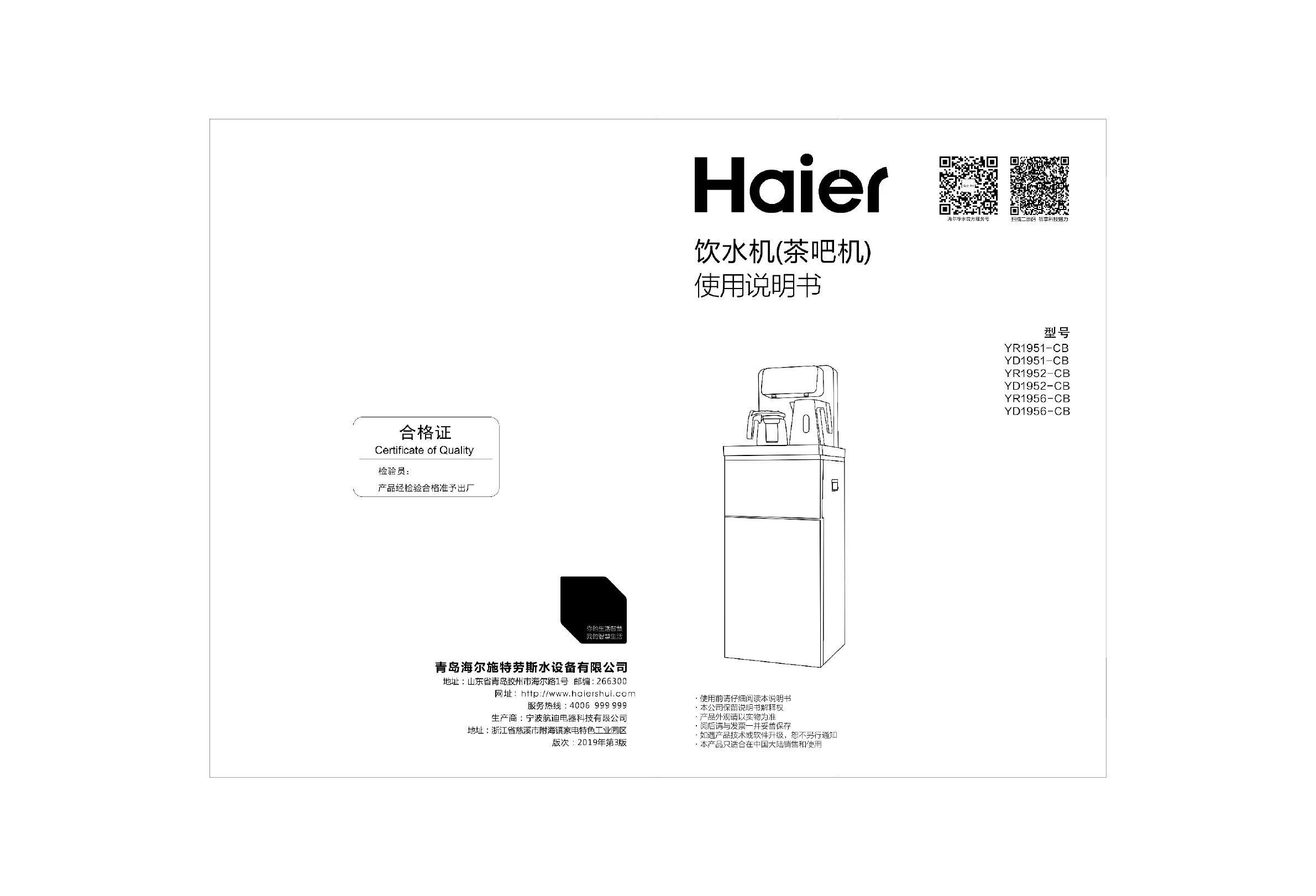 Lies die bedienungsanleitung für Haier YD1952-CB (8 Seiten) kostenlos online; sie gehört zur Kategorie Wasserspender. Dieses Handbuch wurde von 20 Personen als hilfreich bewertet und erhielt im Schnitt 4.7 Sterne aus 7 Bewertungen. Hast du eine Frage zu Haier YD1952-CB oder möchtest du andere Nutzer dieses Produkts befragen? Stelle eine Frage