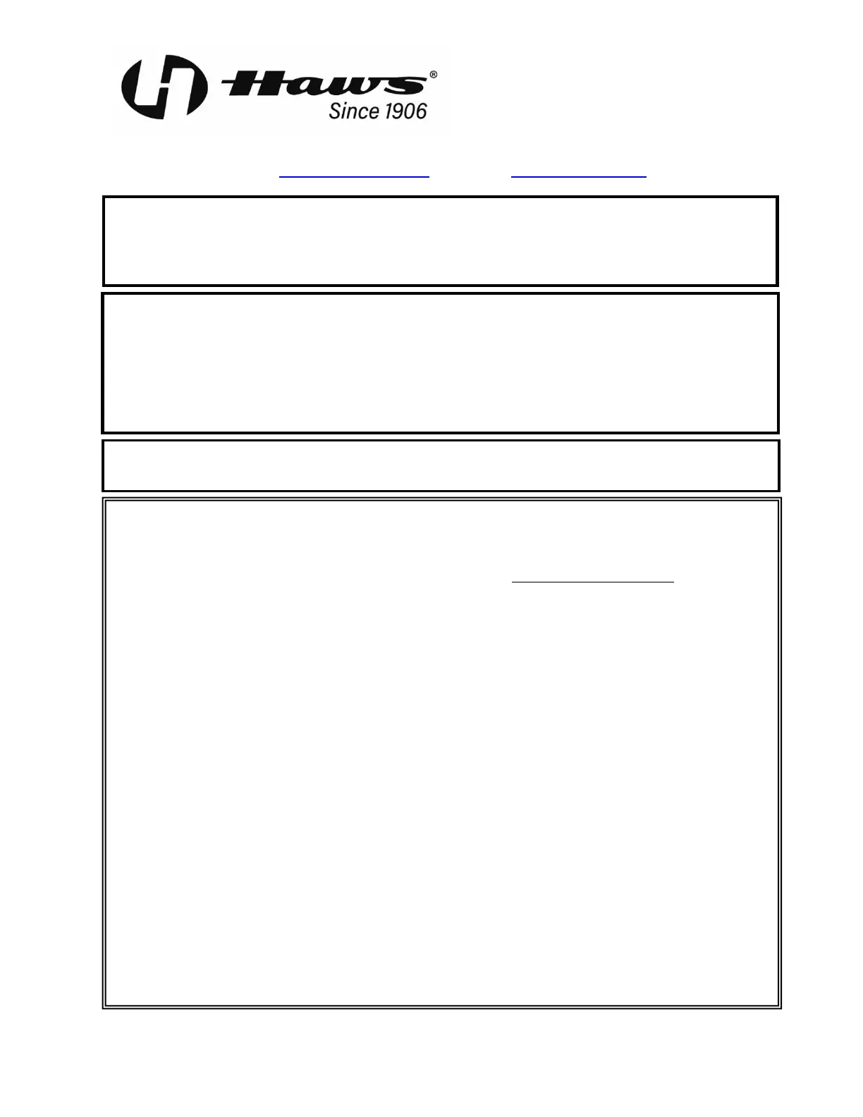 Equipment manufactured by HAWS is warranted to function if installation and maintenance instructions