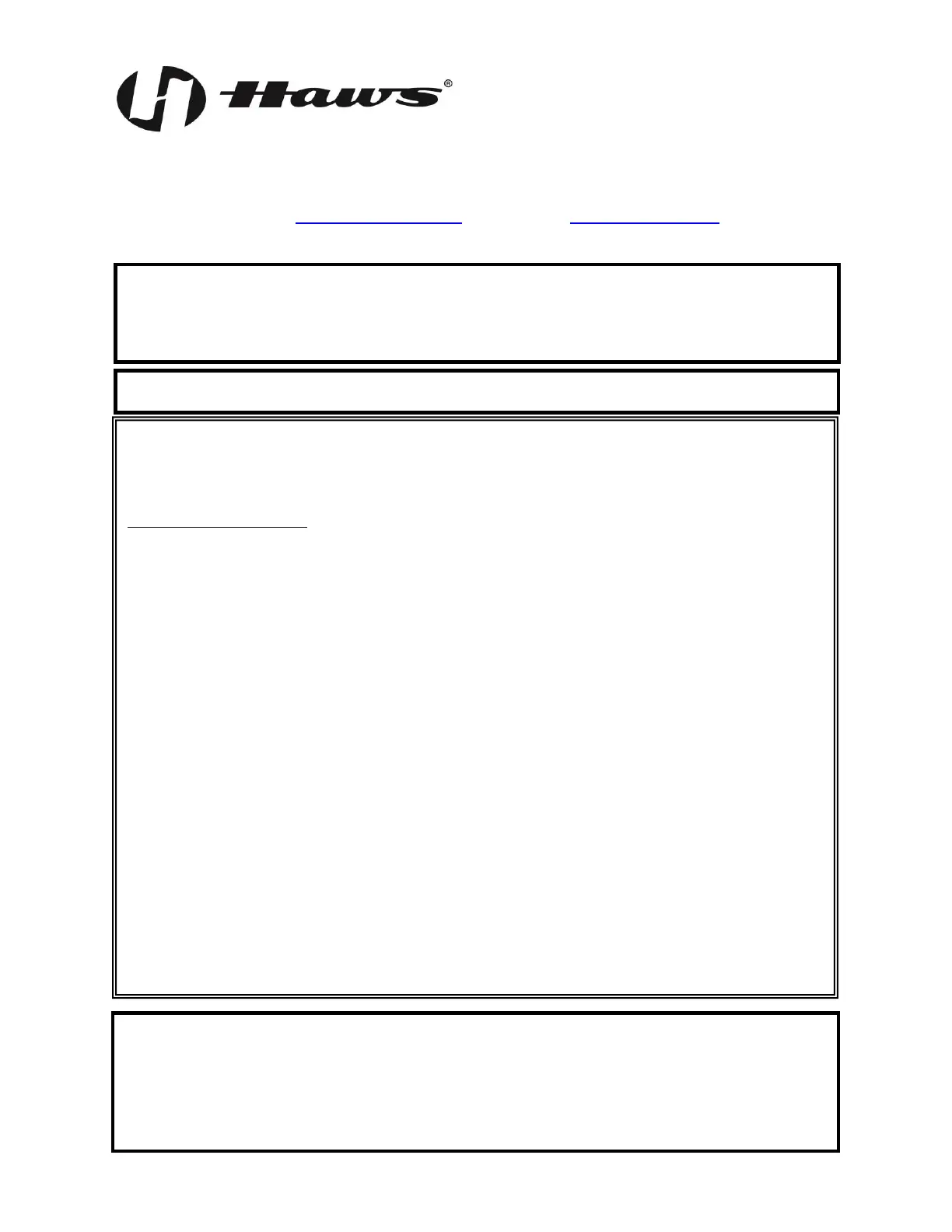 Equipment manufactured by HAWS is warranted to function if installation and maintenance instructions