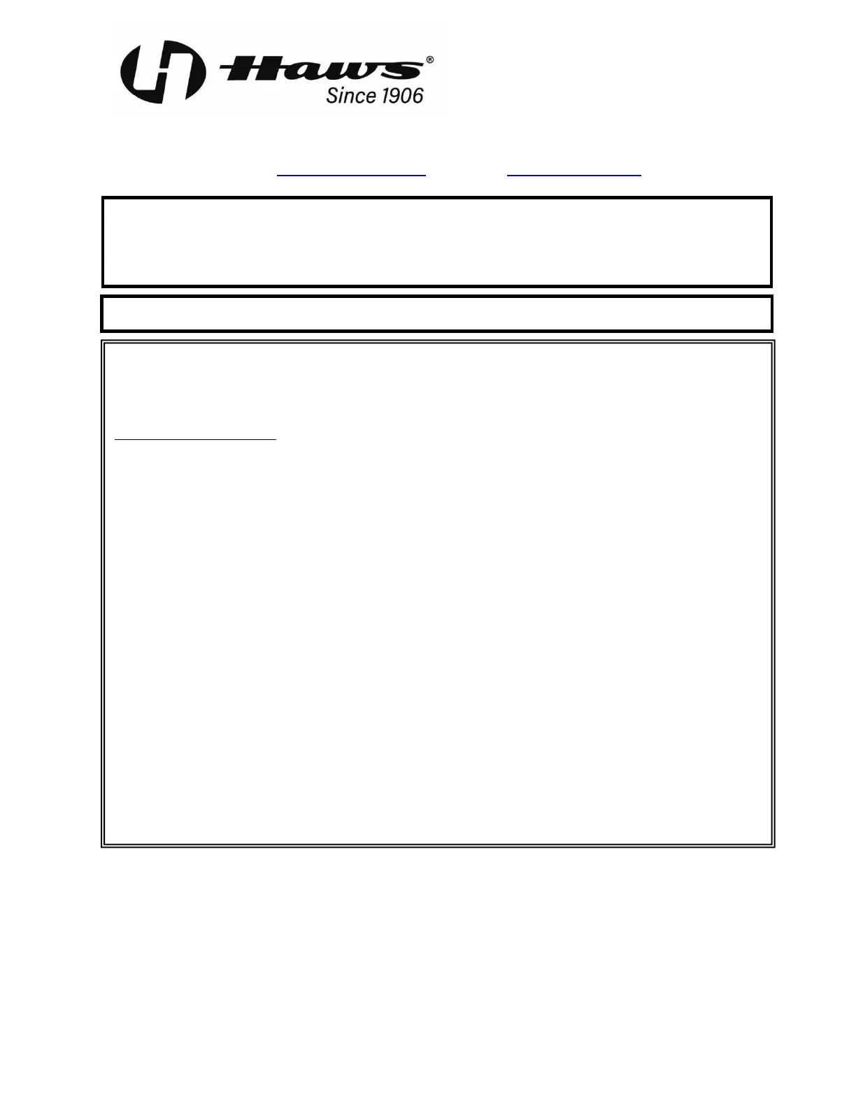 Equipment manufactured by HAWS is warranted to function if installation and maintenance instructions