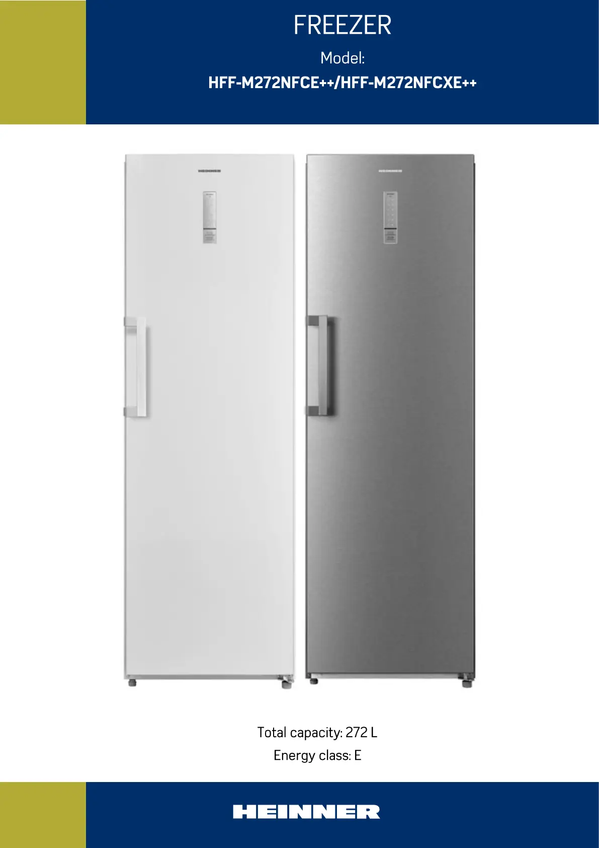 Lies die bedienungsanleitung für Heinner HFF-M272NFCXE++ (94 Seiten) kostenlos online; sie gehört zur Kategorie Gefrierschrank. Dieses Handbuch wurde von 9 Personen als hilfreich bewertet und erhielt im Schnitt 4.4 Sterne aus 5 Bewertungen. Hast du eine Frage zu Heinner HFF-M272NFCXE++ oder möchtest du andere Nutzer dieses Produkts befragen? Stelle eine Frage