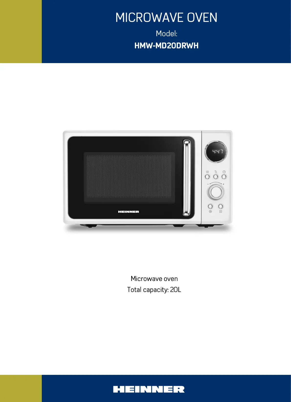 Lies die bedienungsanleitung für Heinner HMW-MD20DRWH (73 Seiten) kostenlos online; sie gehört zur Kategorie Mikrowelle. Dieses Handbuch wurde von 13 Personen als hilfreich bewertet und erhielt im Schnitt 4.4 Sterne aus 8 Bewertungen. Hast du eine Frage zu Heinner HMW-MD20DRWH oder möchtest du andere Nutzer dieses Produkts befragen? Stelle eine Frage