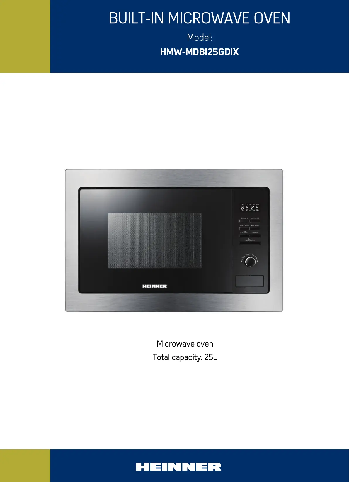 Lies die bedienungsanleitung für Heinner HMW-MDBI25GDIX (92 Seiten) kostenlos online; sie gehört zur Kategorie Mikrowelle. Dieses Handbuch wurde von 7 Personen als hilfreich bewertet und erhielt im Schnitt 4.6 Sterne aus 4 Bewertungen. Hast du eine Frage zu Heinner HMW-MDBI25GDIX oder möchtest du andere Nutzer dieses Produkts befragen? Stelle eine Frage