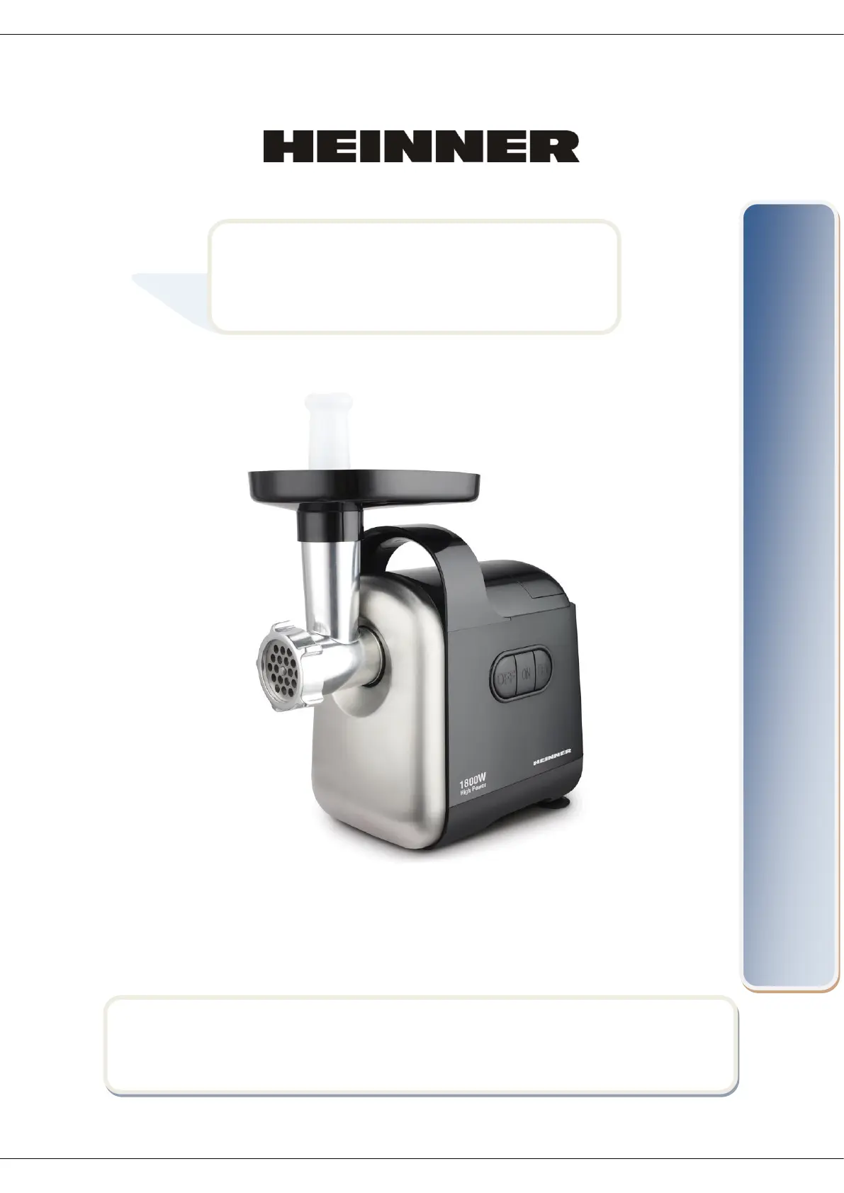 Lies die bedienungsanleitung für Heinner MG-D1800BK (41 Seiten) kostenlos online; sie gehört zur Kategorie Fleischwölfe. Dieses Handbuch wurde von 27 Personen als hilfreich bewertet und erhielt im Schnitt 4.6 Sterne aus 14 Bewertungen. Hast du eine Frage zu Heinner MG-D1800BK oder möchtest du andere Nutzer dieses Produkts befragen? Stelle eine Frage