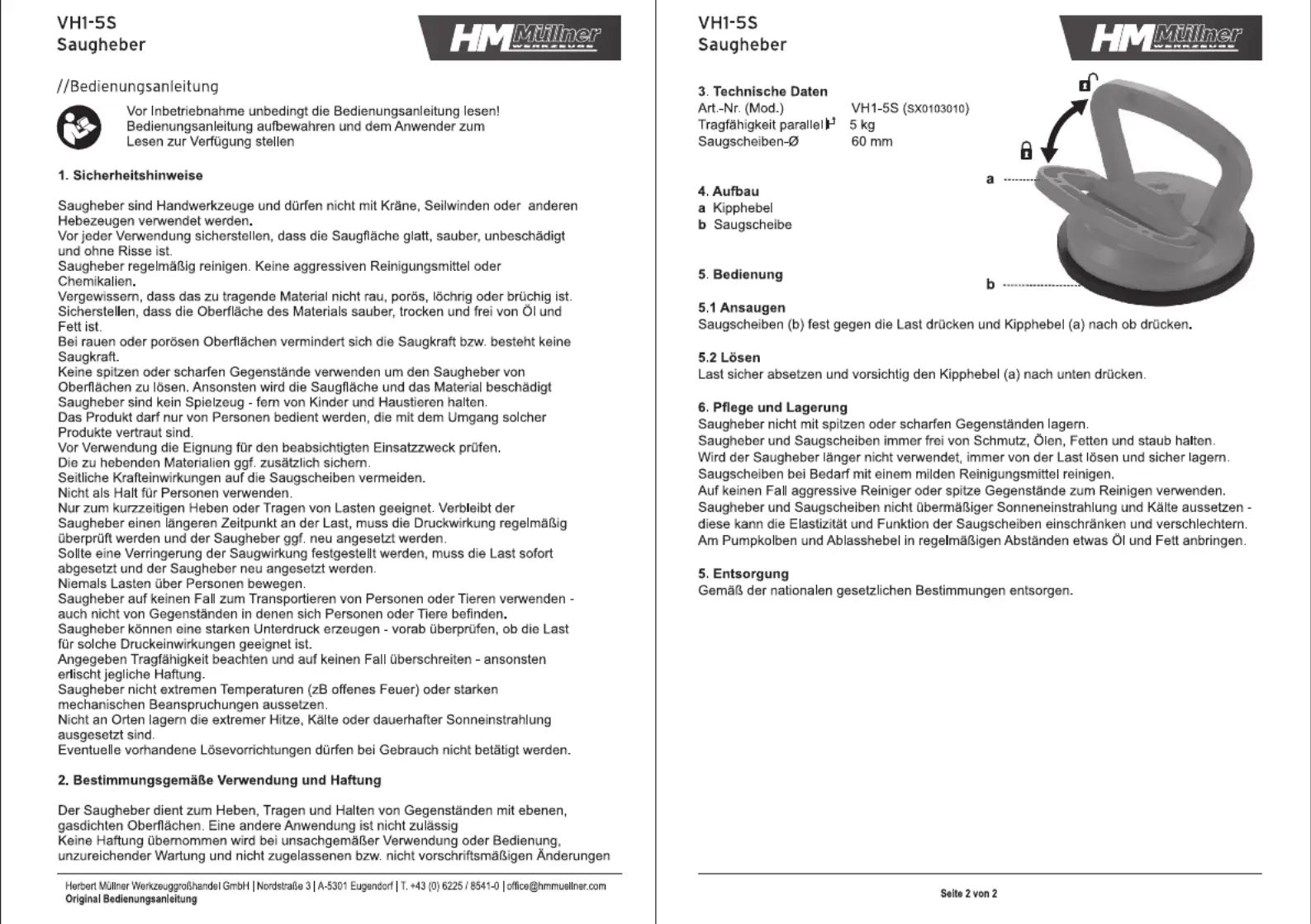 HM MÜLLNER VH1-5S Bedienungsanleitung