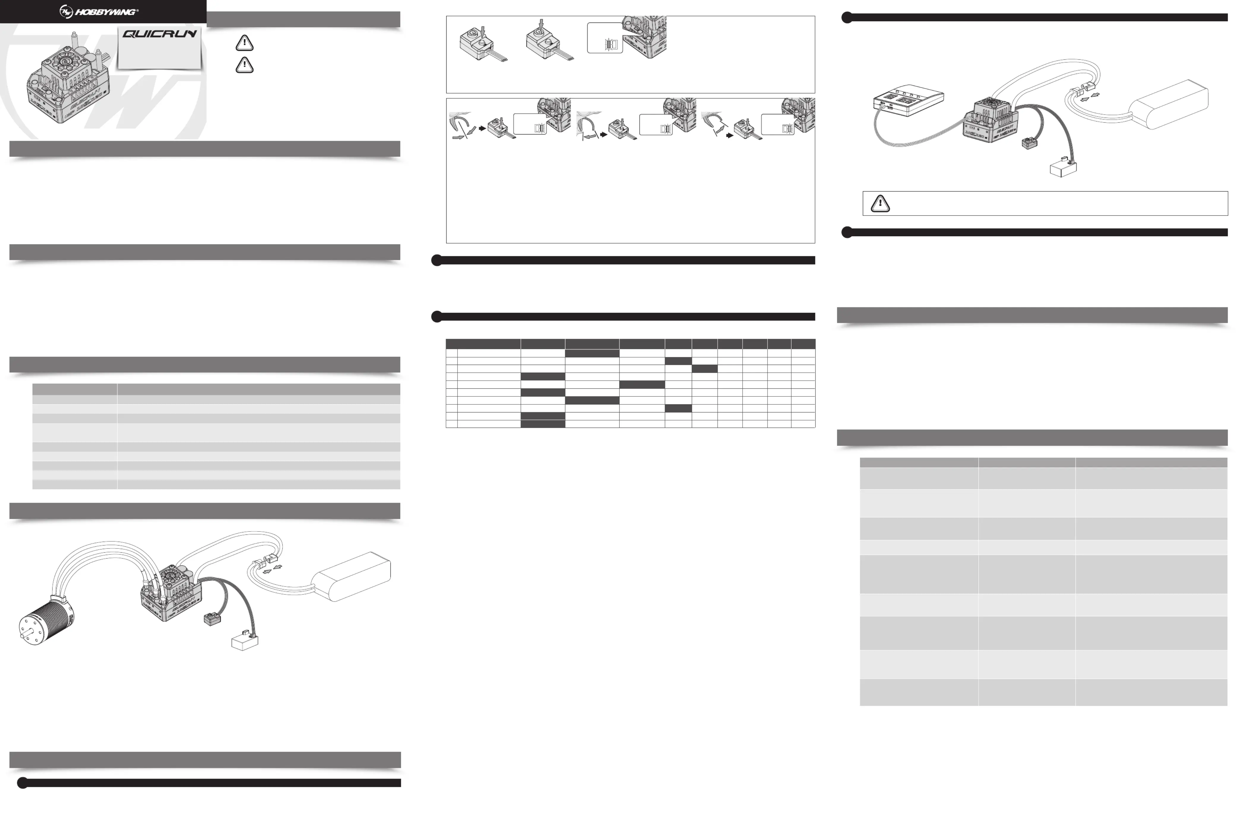 • Before using this product, read the instruction manual carefully. Ensure that the equipment is used appropriately to avoid damaging the ESC. The wrong usage