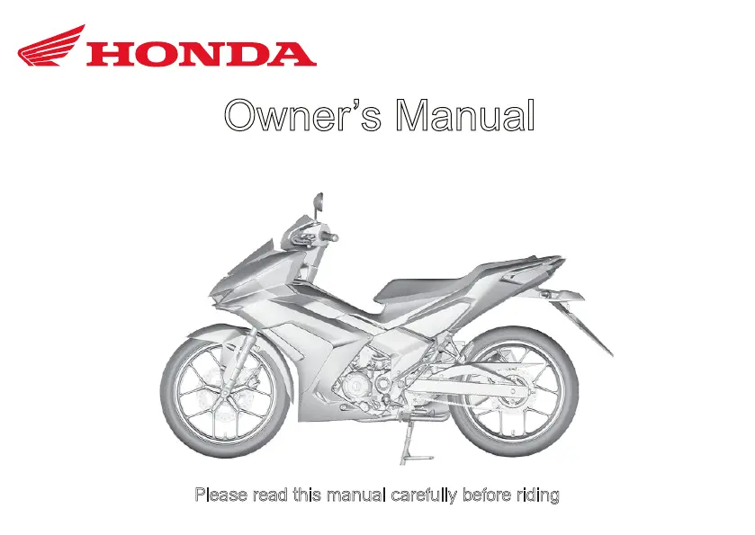 Lies die bedienungsanleitung für Honda WINNER R (2026) (139 Seiten) kostenlos online; sie gehört zur Kategorie Motorrad. Dieses Handbuch wurde von 2 Personen als hilfreich bewertet und erhielt im Schnitt 4.8 Sterne aus 1.5 Bewertungen. Hast du eine Frage zu Honda WINNER R (2026) oder möchtest du andere Nutzer dieses Produkts befragen? Stelle eine Frage