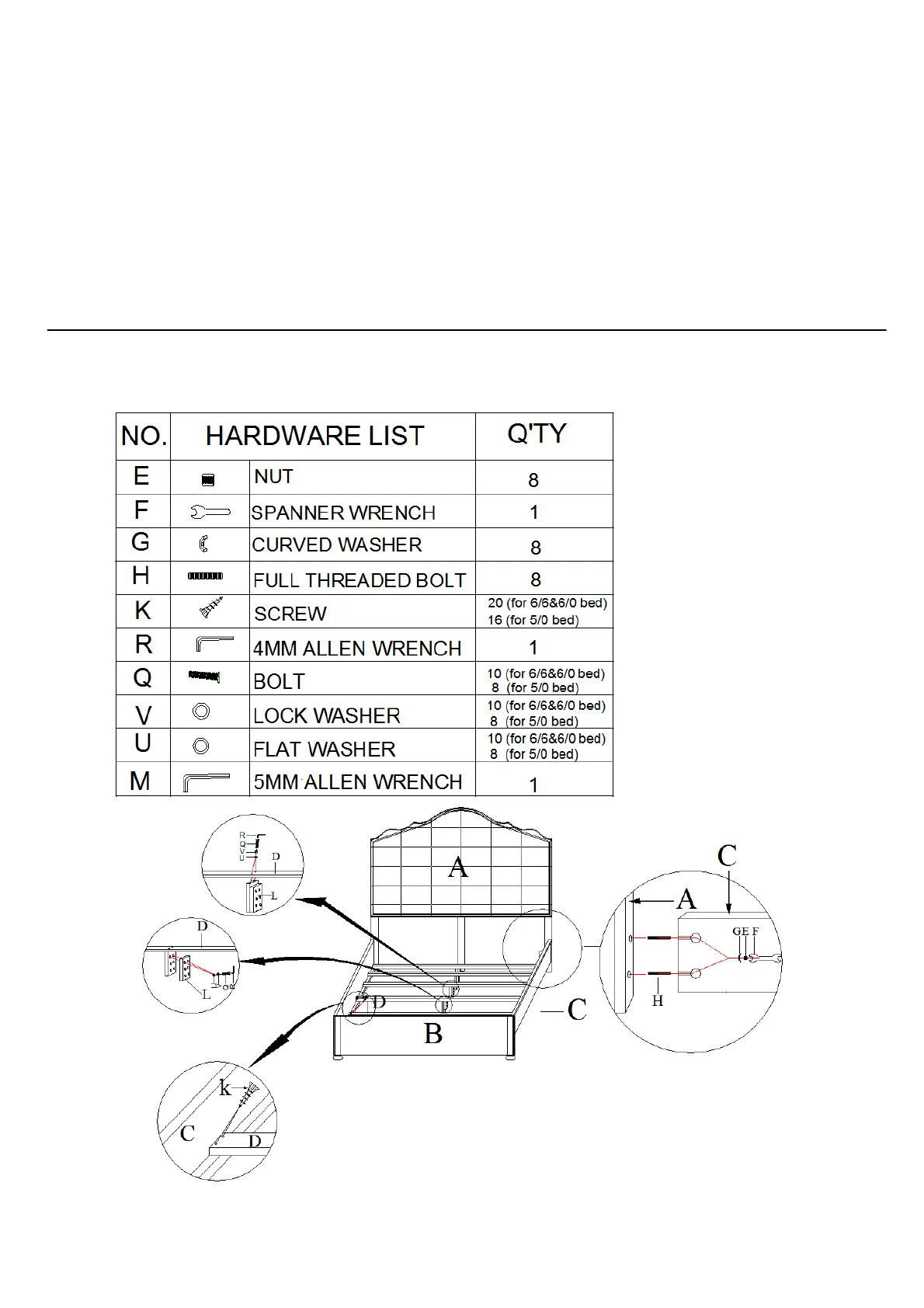 Caution: Please make sure you have all parts indicated below prior to assembly.
