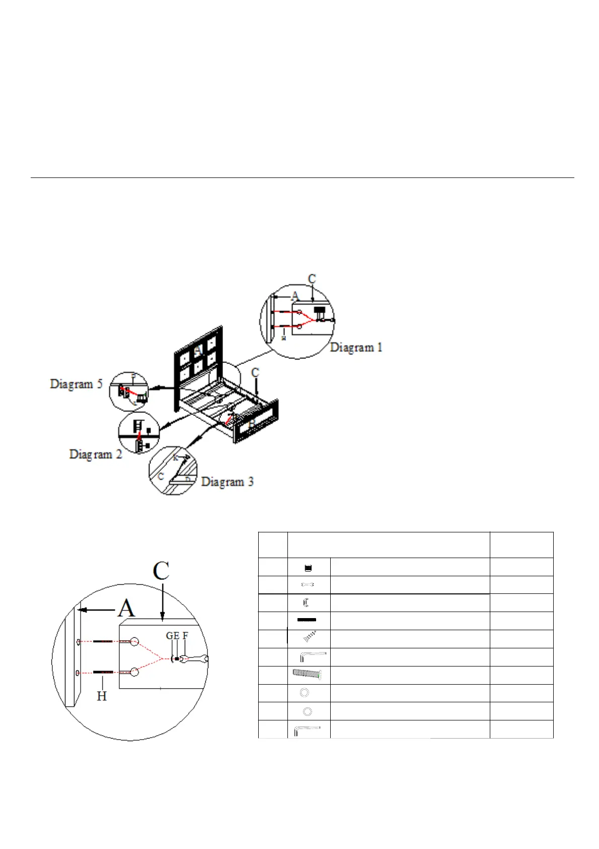 Caution: Please make sure you have all parts indicated below prior to assembly.