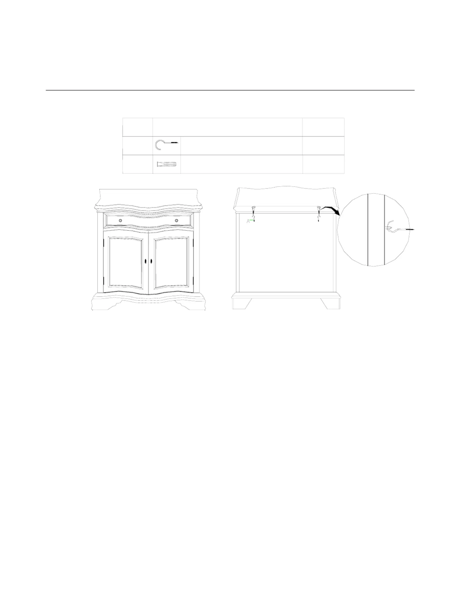 2. Screw the Hook (A) into the Plastic Anchor (B) .Check and make sure the Plastic Anchor(B) is