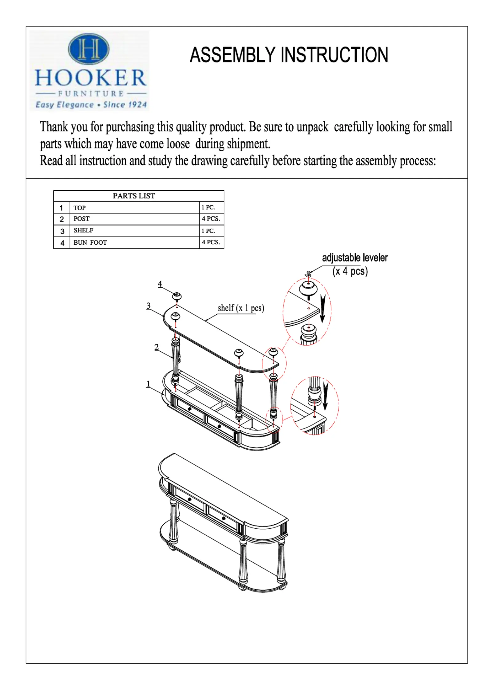 Bedienungsanleitung Tisch Hooker