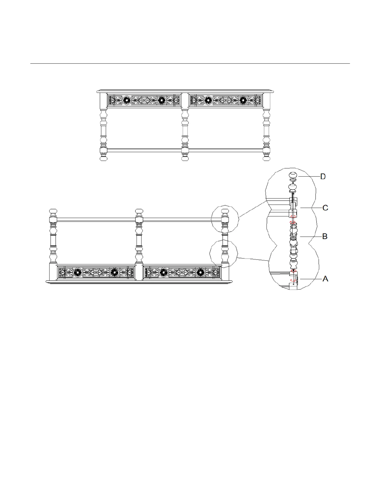 alignment. Screw bun feet ( posts through bottom shelf (C) clockwise direction (See D) into in