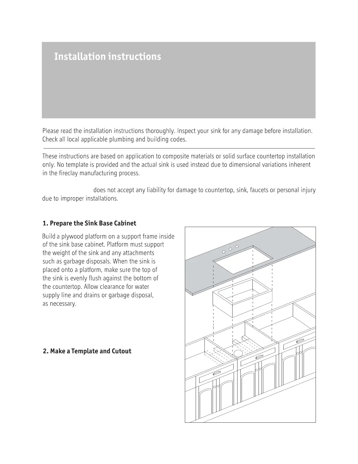 The manufacturer recommends that the sink