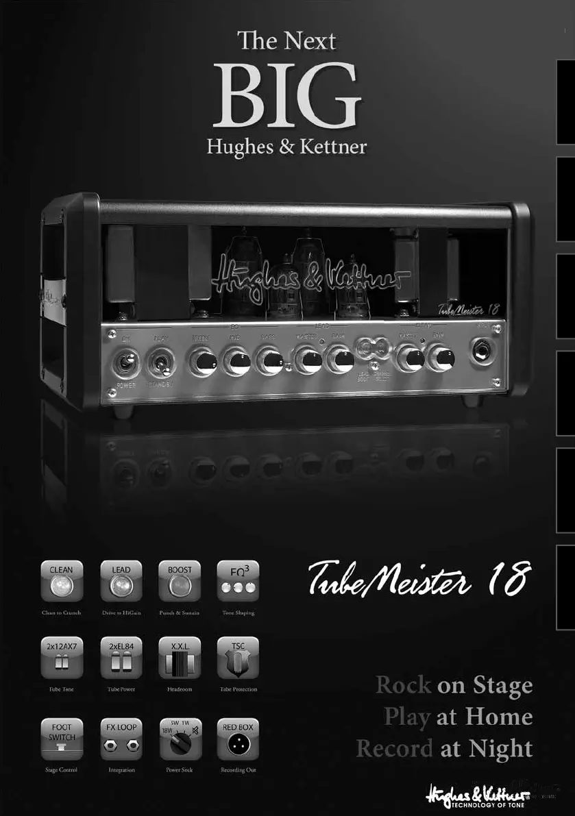 Lies die bedienungsanleitung für Hughes & Kettner TubeMeister 18 Head (52 Seiten) kostenlos online; sie gehört zur Kategorie Empfänger. Dieses Handbuch wurde von 30 Personen als hilfreich bewertet und erhielt im Schnitt 3.7 Sterne aus 15.5 Bewertungen. Hast du eine Frage zu Hughes & Kettner TubeMeister 18 Head oder möchtest du andere Nutzer dieses Produkts befragen? Stelle eine Frage