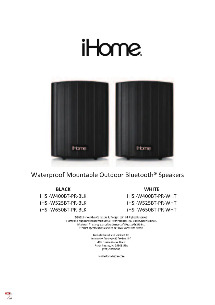 Lies die bedienungsanleitung für IHome iHSI-W400BT-PR-BLK (12 Seiten) kostenlos online; sie gehört zur Kategorie Lautsprecher. Dieses Handbuch wurde von 23 Personen als hilfreich bewertet und erhielt im Schnitt 4.9 Sterne aus 12 Bewertungen. Hast du eine Frage zu IHome iHSI-W400BT-PR-BLK oder möchtest du andere Nutzer dieses Produkts befragen? Stelle eine Frage
