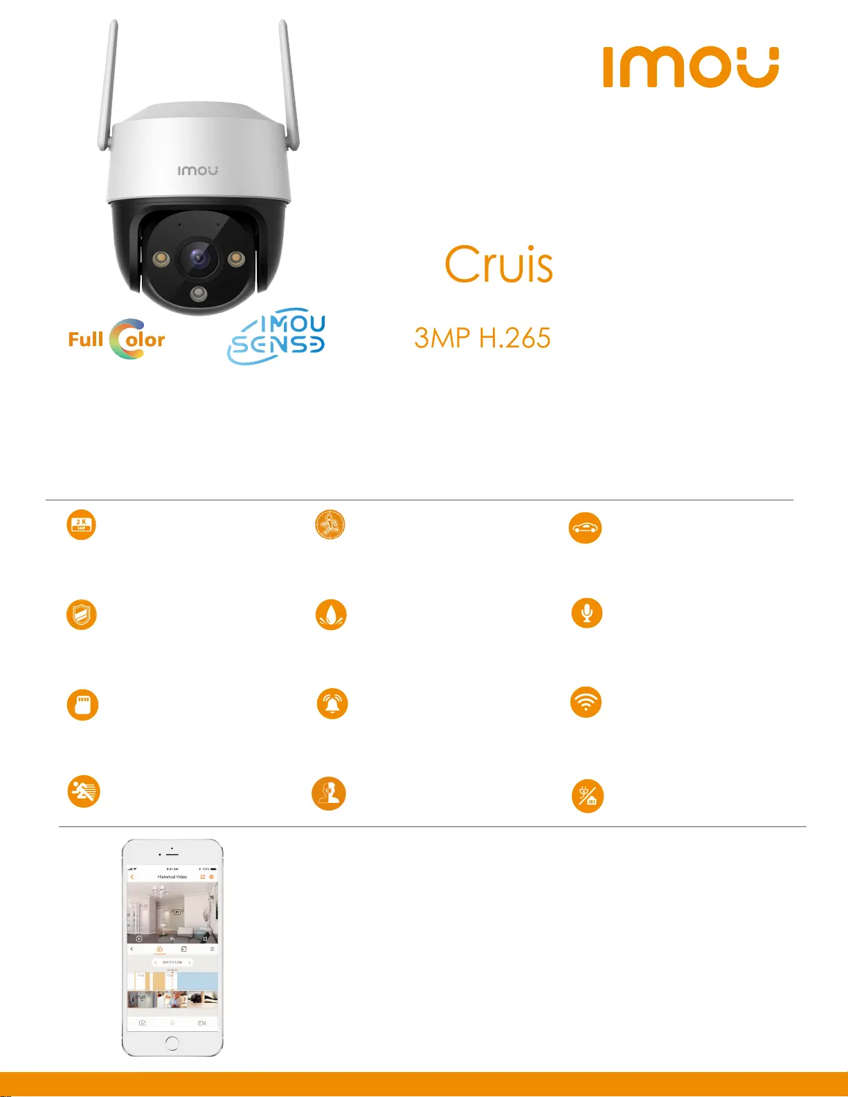 and 0~355°pan & 0~90°tilt features, Cruiser 2C 3MP ensures every corner of your home completely covered.