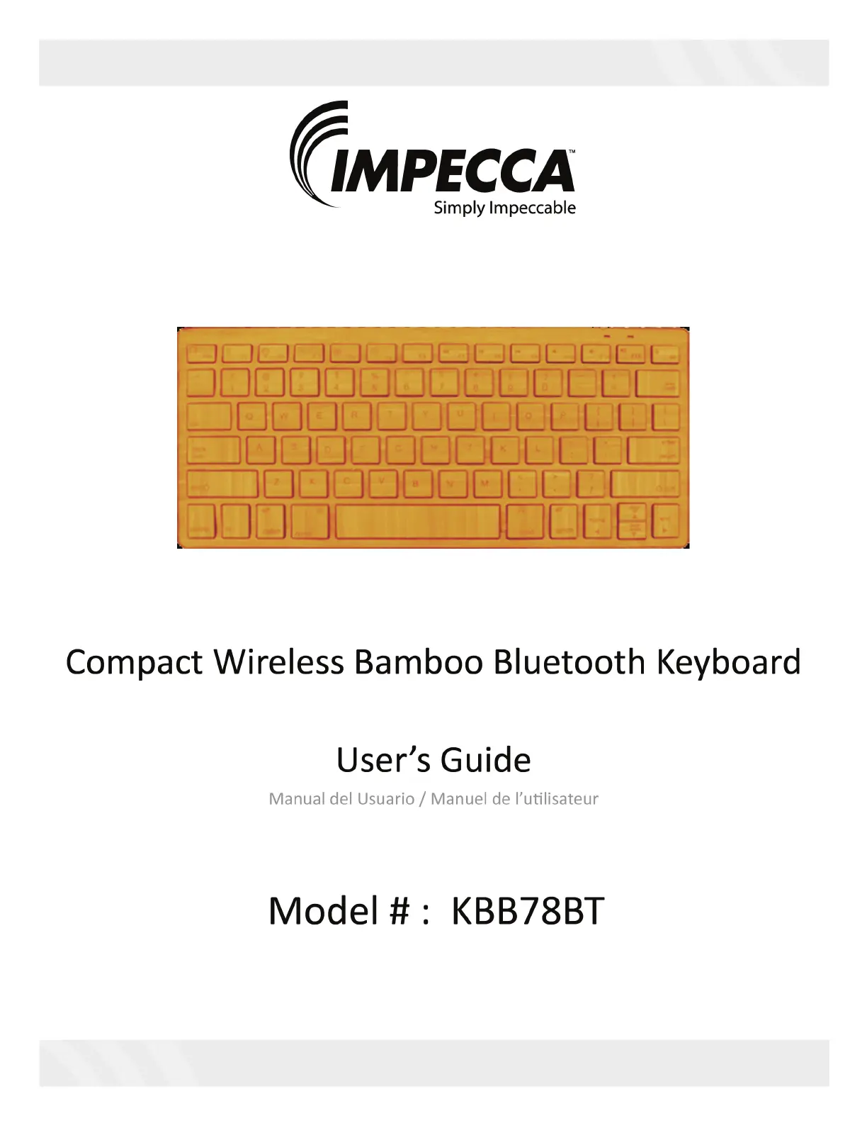 Lies die bedienungsanleitung für Impecca KBB78BT (11 Seiten) kostenlos online; sie gehört zur Kategorie Klaviatur. Dieses Handbuch wurde von 15 Personen als hilfreich bewertet und erhielt im Schnitt 4.0 Sterne aus 8 Bewertungen. Hast du eine Frage zu Impecca KBB78BT oder möchtest du andere Nutzer dieses Produkts befragen? Stelle eine Frage