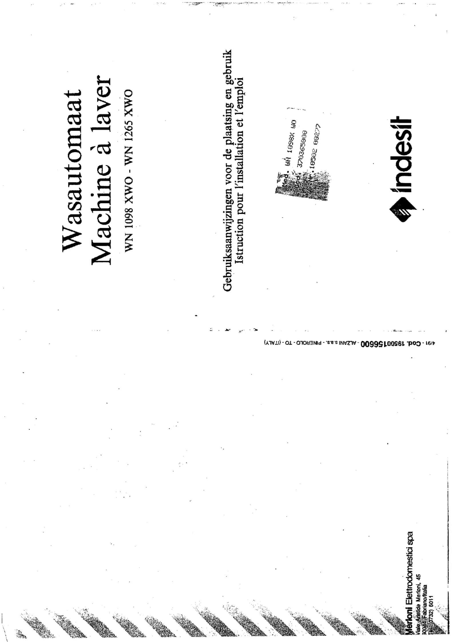Wenn Sie Hilfe mit Indesit WN 1098 XWO benötigen, stellen Sie unten eine Frage und andere Benutzer werden Ihnen antworten