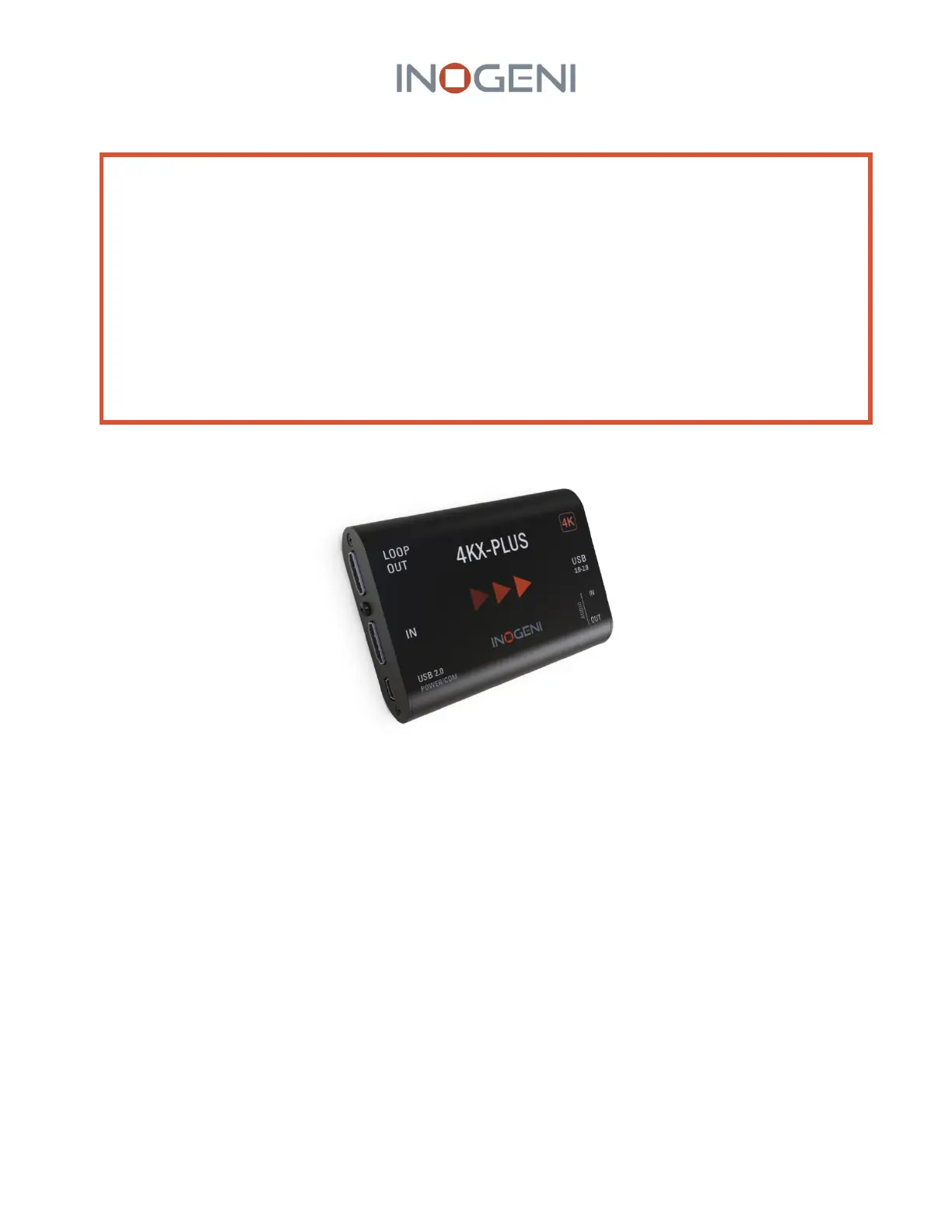 Lies die bedienungsanleitung für INOGENI 4KX-PLUS (12 Seiten) kostenlos online; sie gehört zur Kategorie Audio/Video-Konverter. Dieses Handbuch wurde von 11 Personen als hilfreich bewertet und erhielt im Schnitt 4.3 Sterne aus 6 Bewertungen. Hast du eine Frage zu INOGENI 4KX-PLUS oder möchtest du andere Nutzer dieses Produkts befragen? Stelle eine Frage