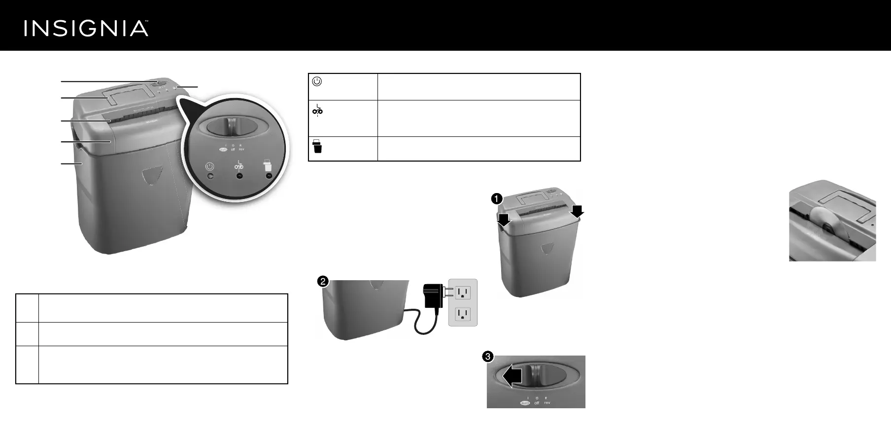 revUse the reverse setting to clear a paper jam or to pull out unshredded paper.