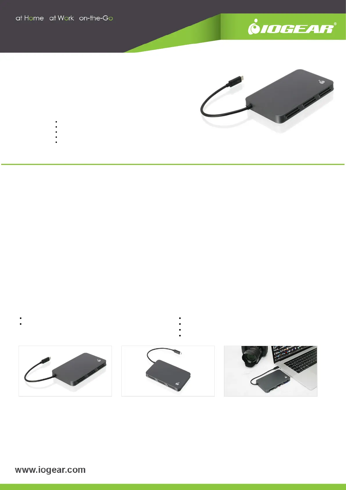 data transfer speeds reaching 40 Gbps. The Card Reader is also compatible with any Thuderbolt 3-equipped laptop or tablet