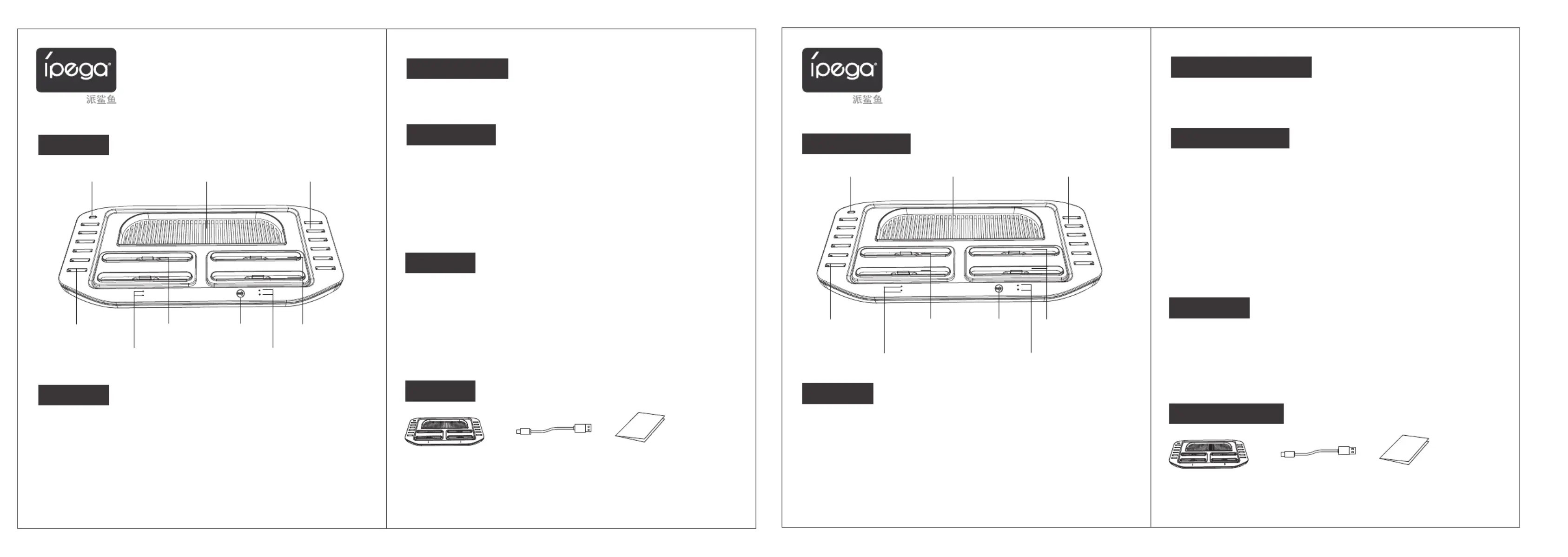 2. 产品通电后,4个手柄插槽充电指示灯蓝色常亮;