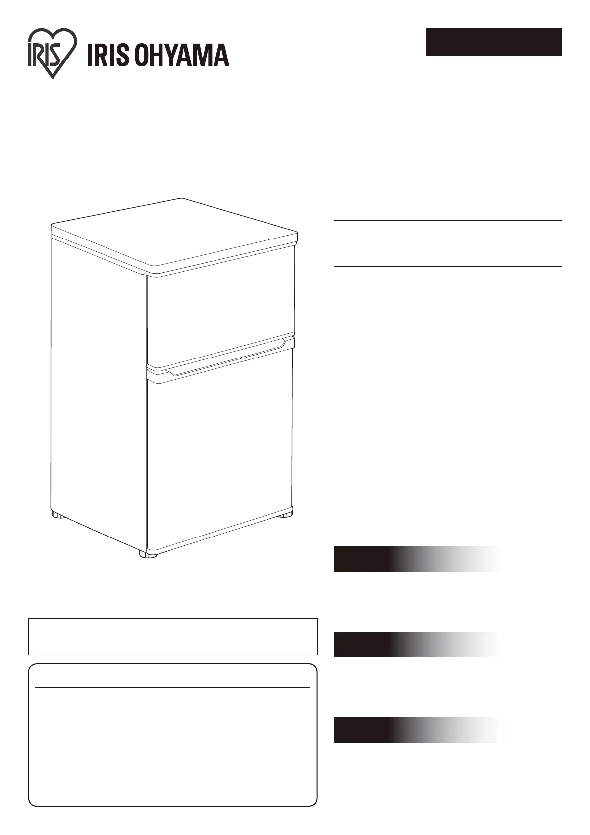Lies die bedienungsanleitung für Iris Ohyama IRR-90TF (12 Seiten) kostenlos online; sie gehört zur Kategorie Kühlschrank. Dieses Handbuch wurde von 2 Personen als hilfreich bewertet und erhielt im Schnitt 4.6 Sterne aus 2 Bewertungen. Hast du eine Frage zu Iris Ohyama IRR-90TF oder möchtest du andere Nutzer dieses Produkts befragen? Stelle eine Frage