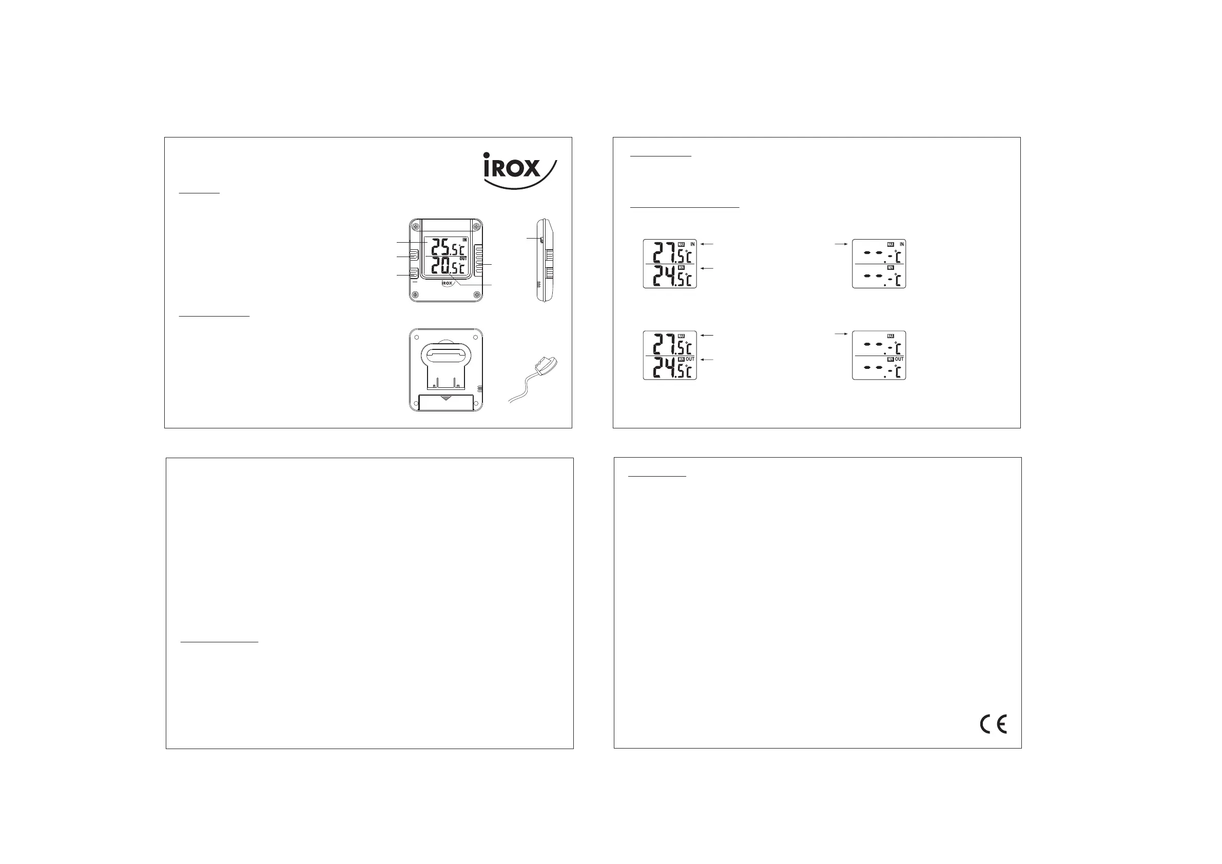 Lies die bedienungsanleitung für Irox CT111C (5 Seiten) kostenlos online; sie gehört zur Kategorie Thermometer. Dieses Handbuch wurde von 10 Personen als hilfreich bewertet und erhielt im Schnitt 4.8 Sterne aus 5.5 Bewertungen. Hast du eine Frage zu Irox CT111C oder möchtest du andere Nutzer dieses Produkts befragen? Stelle eine Frage