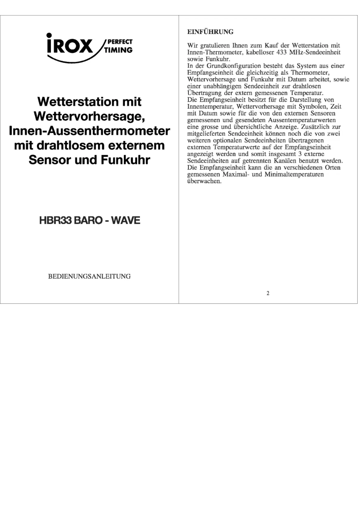 Irox HBR33 Bedienungsanleitung