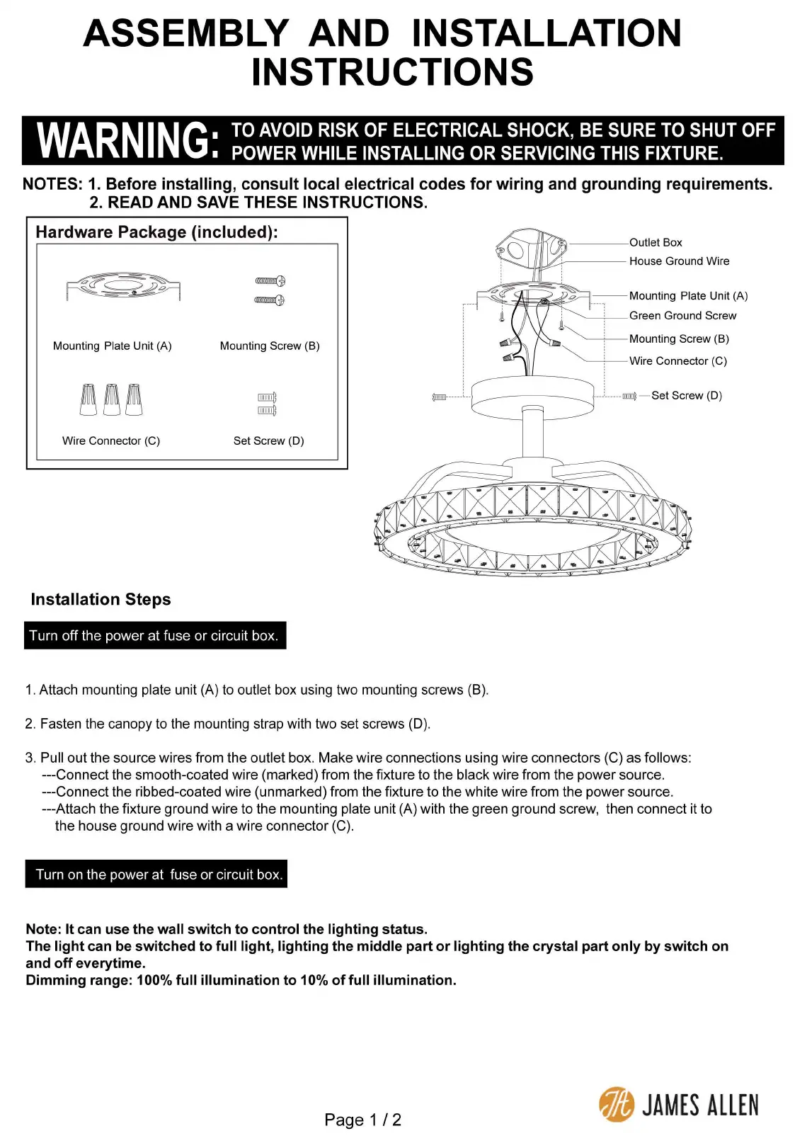 Lies die bedienungsanleitung für James Allan Boulevard VXCF21246BN (2 Seiten) kostenlos online; sie gehört zur Kategorie Beleuchtung. Dieses Handbuch wurde von 2 Personen als hilfreich bewertet und erhielt im Schnitt 4.6 Sterne aus 7 Bewertungen. Hast du eine Frage zu James Allan Boulevard VXCF21246BN oder möchtest du andere Nutzer dieses Produkts befragen? Stelle eine Frage