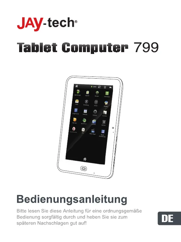Lies die bedienungsanleitung für JayTech 799 (38 Seiten) kostenlos online; sie gehört zur Kategorie Tablette. Dieses Handbuch wurde von 32 Personen als hilfreich bewertet und erhielt im Schnitt 4.1 Sterne aus 16.5 Bewertungen. Hast du eine Frage zu JayTech 799 oder möchtest du andere Nutzer dieses Produkts befragen? Stelle eine Frage