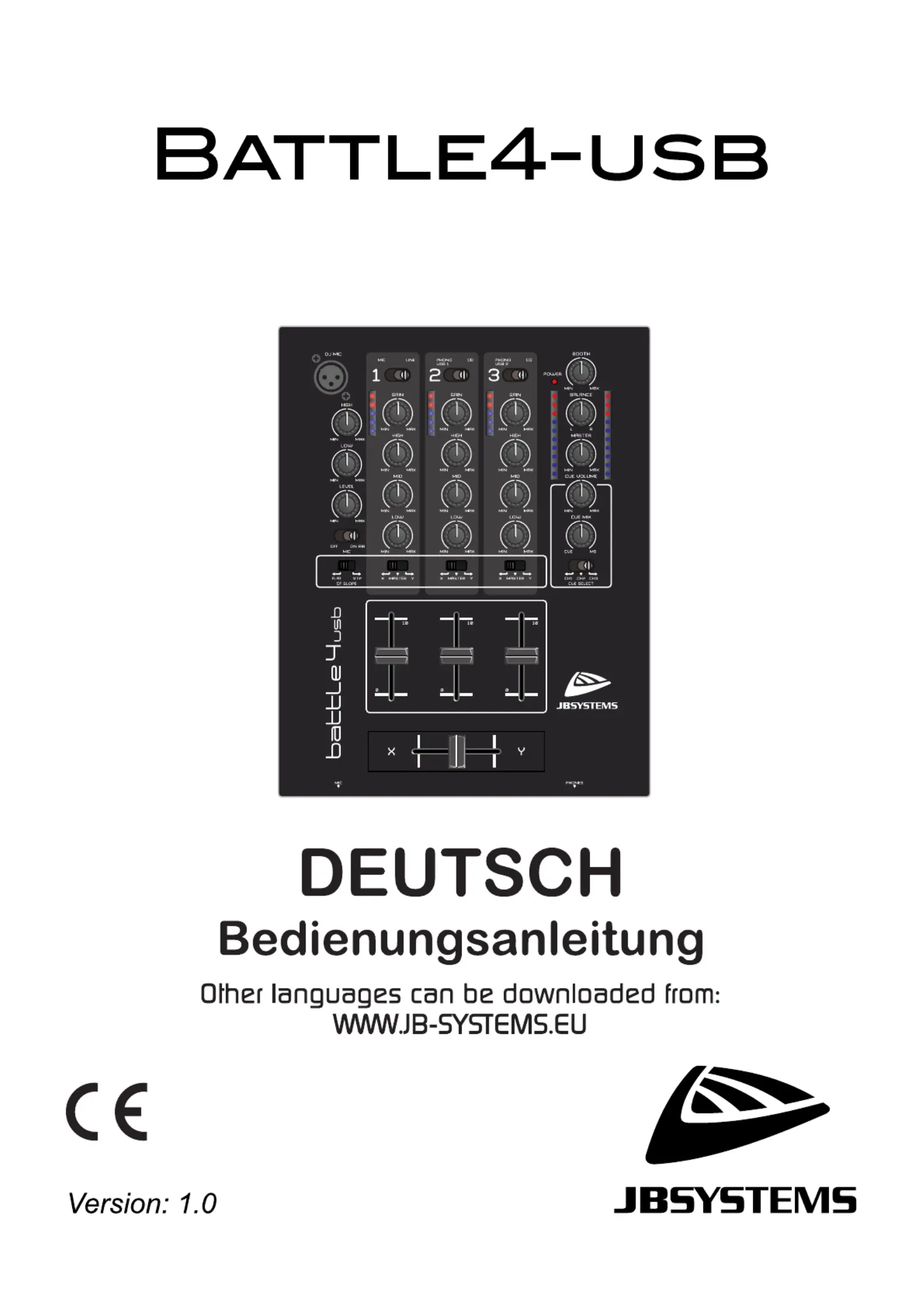 Lies die bedienungsanleitung für JB Systems Battle 4 USB (8 Seiten) kostenlos online; sie gehört zur Kategorie Mischpult. Dieses Handbuch wurde von 33 Personen als hilfreich bewertet und erhielt im Schnitt 4.9 Sterne aus 17 Bewertungen. Hast du eine Frage zu JB Systems Battle 4 USB oder möchtest du andere Nutzer dieses Produkts befragen? Stelle eine Frage