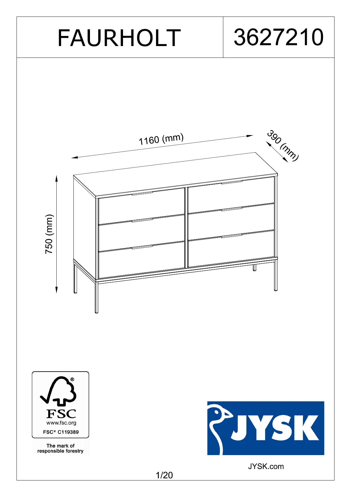 JYSK Faurholt (116x75x39) Bedienungsanleitung