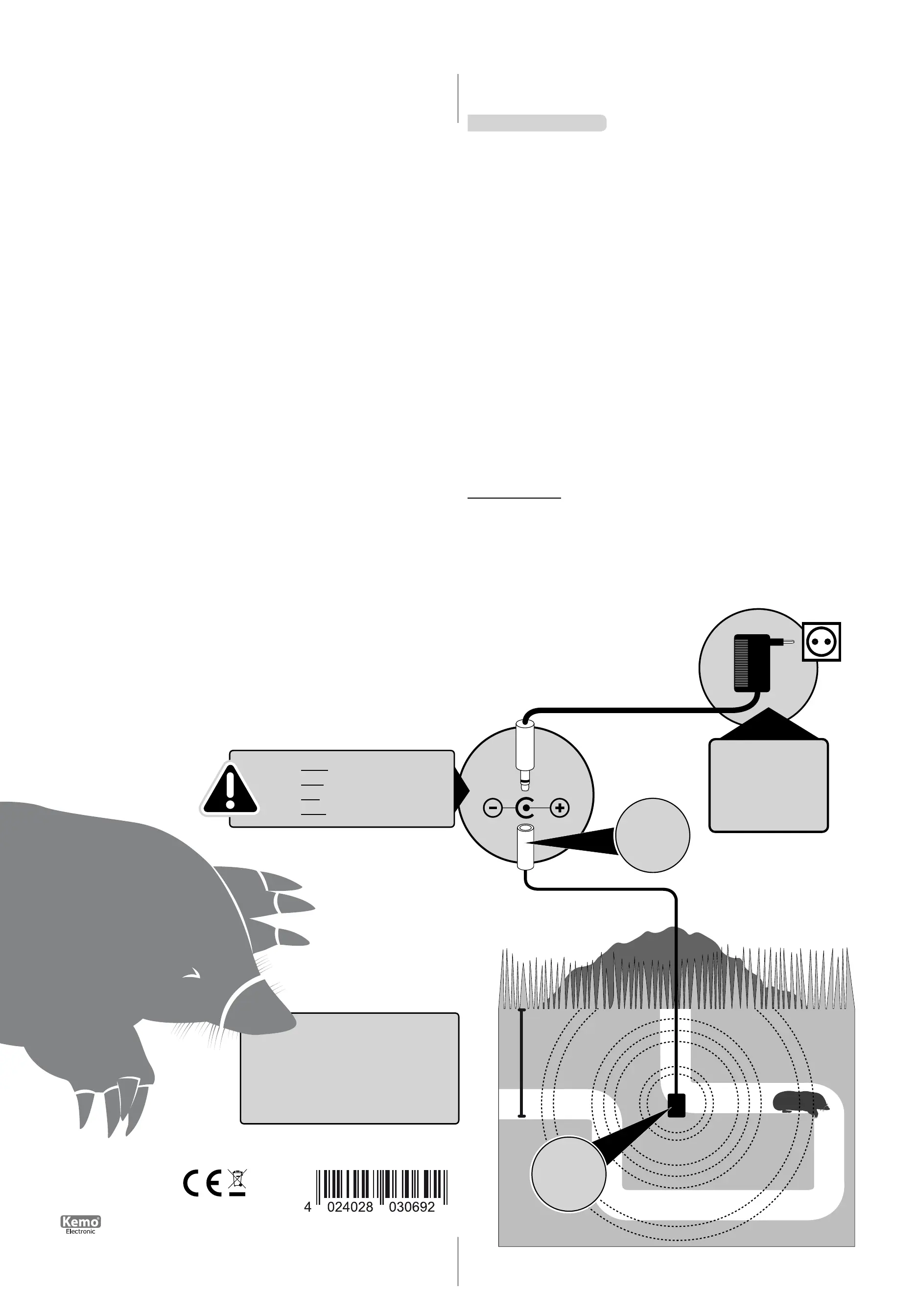 les campagnols, taupes et autres rongeurs. Le module sera enfoui dans le sol à proximité