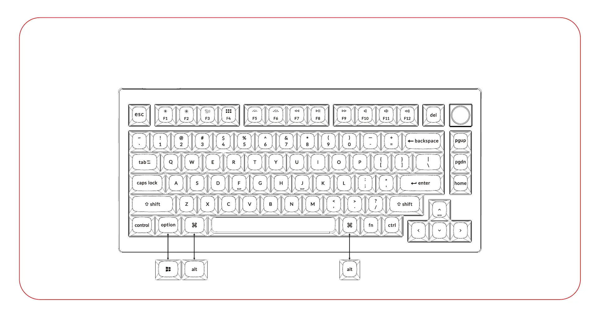 If you are a Windows user, please find the appropriate keycaps in the box, then follow the instructions below to find and replace the following keycaps.