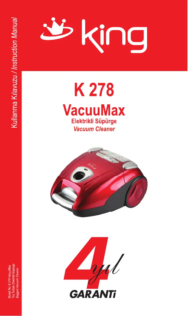 Lies die bedienungsanleitung für King K-278 (14 Seiten) kostenlos online; sie gehört zur Kategorie Staubsauger. Dieses Handbuch wurde von 22 Personen als hilfreich bewertet und erhielt im Schnitt 4.3 Sterne aus 11.5 Bewertungen. Hast du eine Frage zu King K-278 oder möchtest du andere Nutzer dieses Produkts befragen? Stelle eine Frage